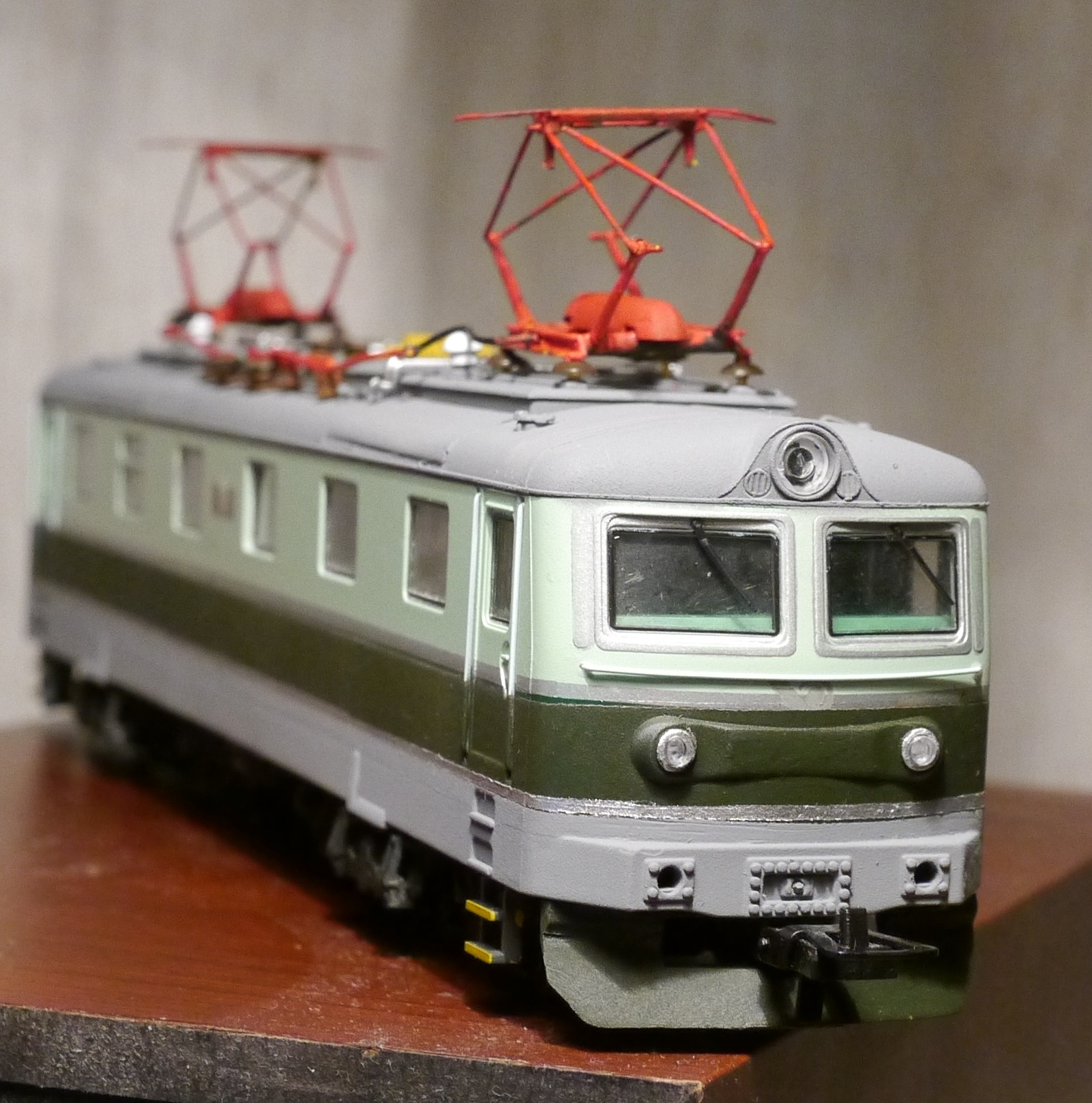 Покупал собственно под конверсию в ЧС2, но как-то жалко стало в первый момент. Катал его как чеха. Но начали раздражать желтые пантографы, с которых активно осыпалась краска :? Потому вчера вечером взял да перекрасил их в красный цвет. Заодно задул в черный боковины телег. А потом, когда все нормальные люди пошли спать, Витя глянул на электровоз и не смог остановиться :lol: