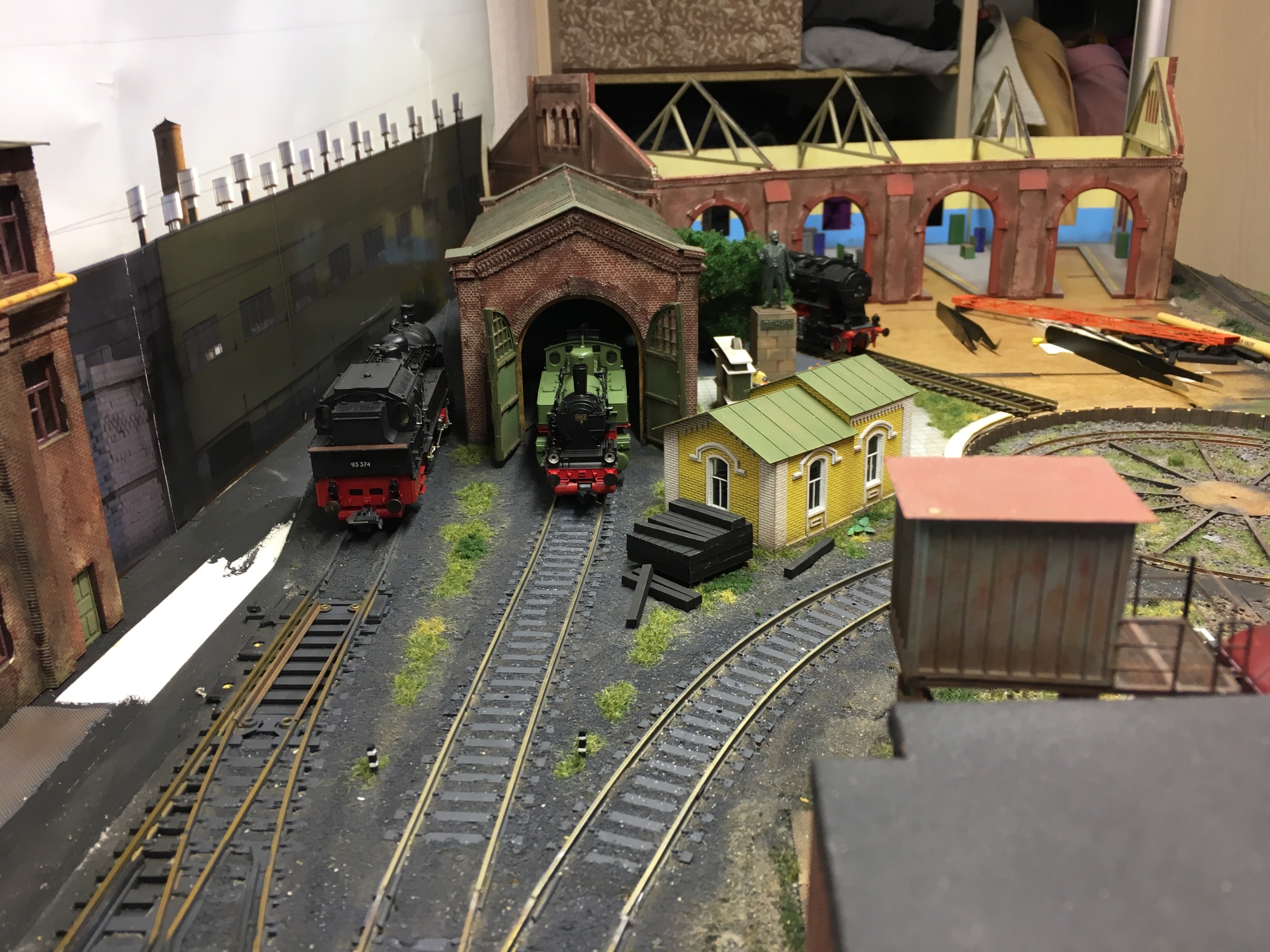 Веерное депо всегда вкусная тема, целый мирок на пятачке ;) можно насытить кучей ништяков, спец. техники и пр. А уж кран потолочный мммм ням.