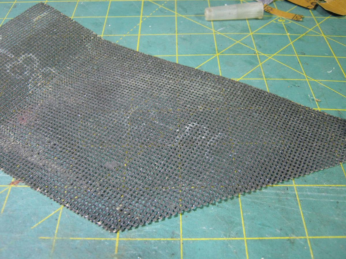 На работе изъял у ребят, занимающихся кузовными работами на автомобилях, кусок вот такой абразивной сетки. Абразивные свойства меня не интересовали и решил попробовать применить в другом качестве. И прикидка в интерьере.
