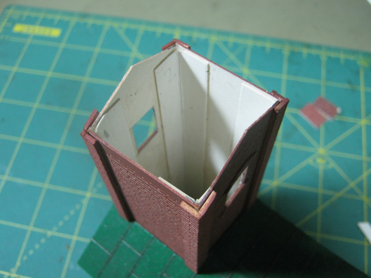 Далее уже обычный цикл. Если не сильно усердствовать при покраске, то рисунок кирпича можно выгодно проявить. Пока в наличии вот такая заготовка. Оконные проёмы на башне забыл прорезать, но это не проблема.