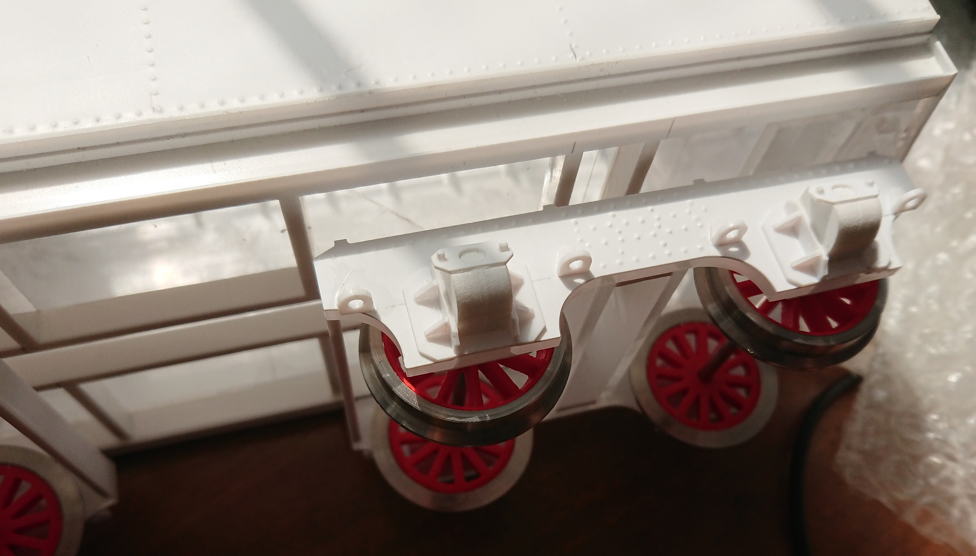 На моделях использовали работающие буфера и орудия выточенные из латуни, колесные реборды для паровоза и тендера - нержавейка. И все это собственного производства. Все остальные элементы в основном полистирол, хотя изначально была задумка выполнить весь ПС из латуни путем разработки фототравления, но от этой технологии пришлось отказаться по ряду весомых причин: отсутствие времени и бюджет.