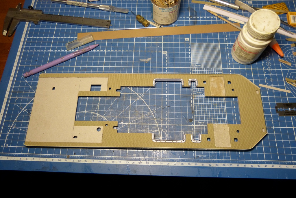 У Петра Гудзя издательство "Бумажная планета" заказал лист гравировки для настилов,ну и начал с платформы.Вычертил и подогнал рифленку,канты установил