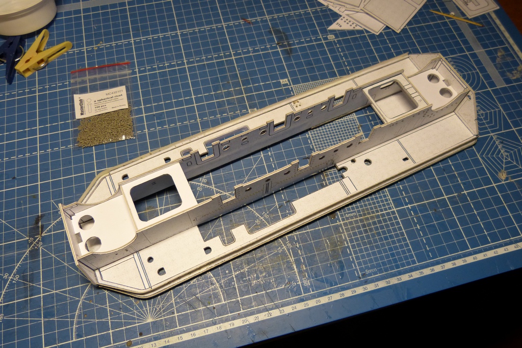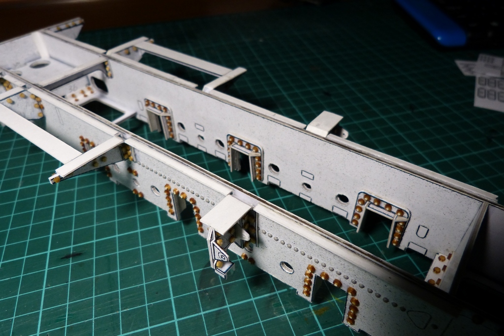 Начал раму экипажную часть,клепка,заклепки от мастер-клуб сферические 1.6мм установочное отверстие 1мм.