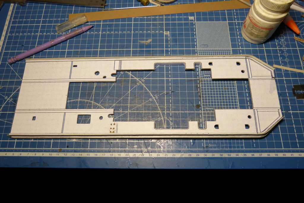 У Петра Гудзя издательство "Бумажная планета" заказал лист гравировки для настилов,ну и начал с платформы.Вычертил и подогнал рифленку,канты установил