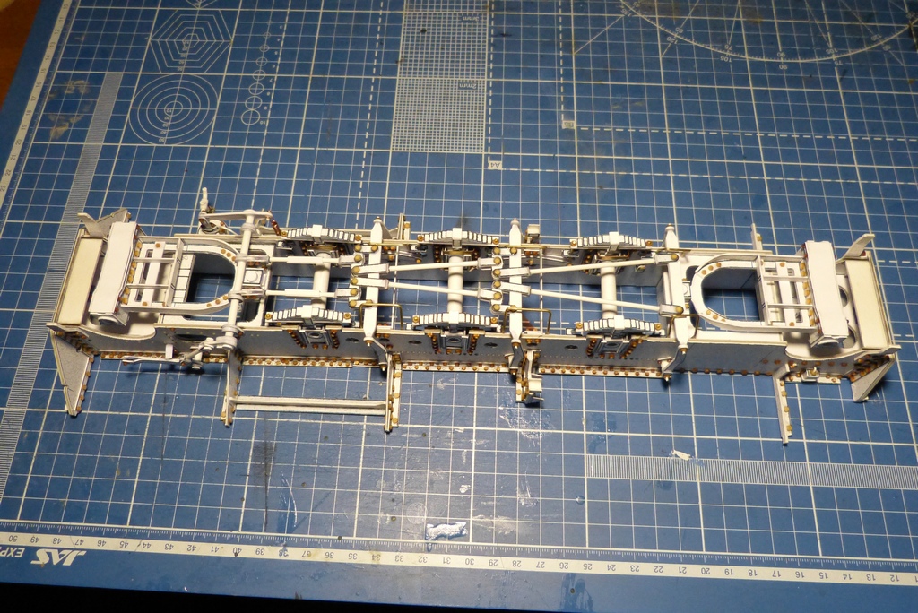 Ну вот,если правильно называю с экипажной частью закончено,сделаны и поставлены - фильтр возле тормозного цилиндра,краник,электрические разпредкоробки ,куча клепок,гаек.Теперь на очереди тележки бегунковых колес