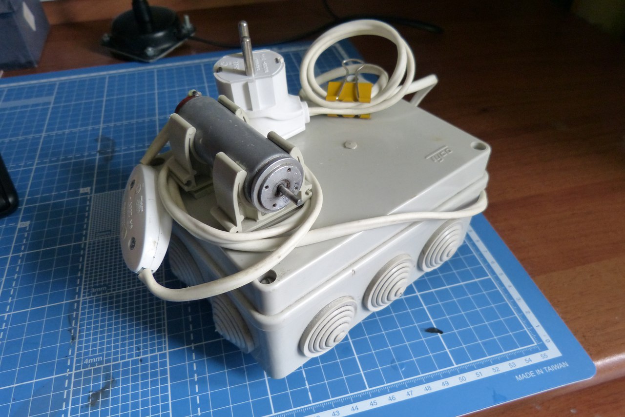 А точильце вот такое,это моторчик 27v от печатающего устройства СМ6337 я уволок еще в 1988г. с нашего ПО "Счетмаш",там понижающий транс и диодный мост,теперь когда появились всякие штуки я все спрятал в монтажную электрокоробку,для того чтобы использовать как точило прикрутил клипсы для пластиковых труб