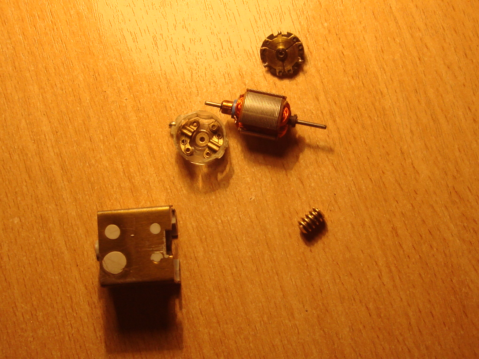 Разобрав родной движок, пришел к выводу, что он заклинил из-за криво посаженного на вал коллектора. Короче, щетка уперлась в одну из ламелей коллектора. После недолгих раздумий, решил использовать более ранний двиг Пико в этом локомотиве... Переделка заключалась в том, что плоский коллектор был заменен на обычный круглый. Такие были на более ранних движках. Ну и само собой крышка с щеткодержателями.