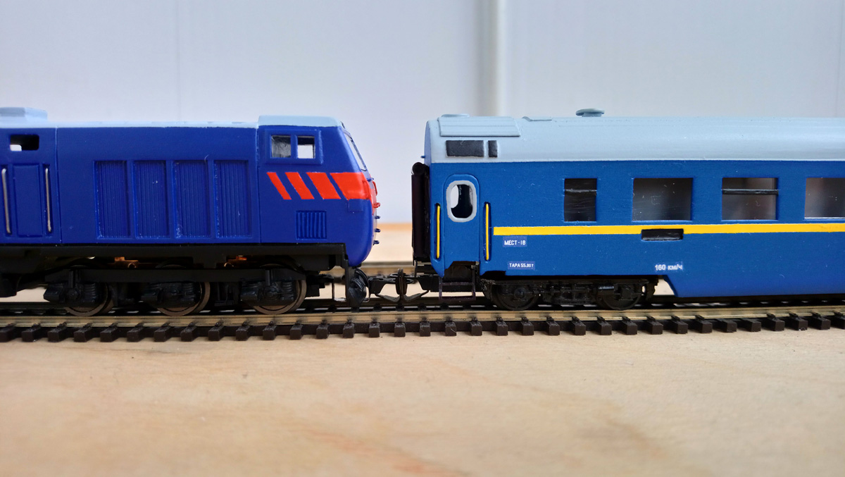 Да, он немного короче получился, чем масштабная длина, но для покатушек сойдет. Разница в длине не так бросается в глаза в реальности. Да и в условиях макета "ломающийся" состав из вагонов реальной длины выглядит не так эстетично, как хотелось бы.