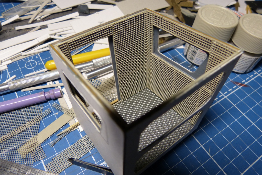 Короче взялся за кабину,злодейски проник в местное депо где обнаружил похожий сарай,увидал,что кабина имеет несколько внутренних слоев обшивки,пористый утеплитель+рамочный каркас и сверху металлическая сетка с прямоугольными ячейками,голова сломалась в думах про утеплитель и сетку,списался с товарищем ВК Петр Гудзь и попросил сделать мне хту хрень лазерной резкой,все сделали я доволен как слоняра.Потом как сваять сетку,обошел местные строительные магазины в поисках сетки которую используют штукатуры при зачистке стен,но зараза все толстое хоть и есть подходящие ячейки,башка сломалась опять.......И ЭВРИКА !!!!!