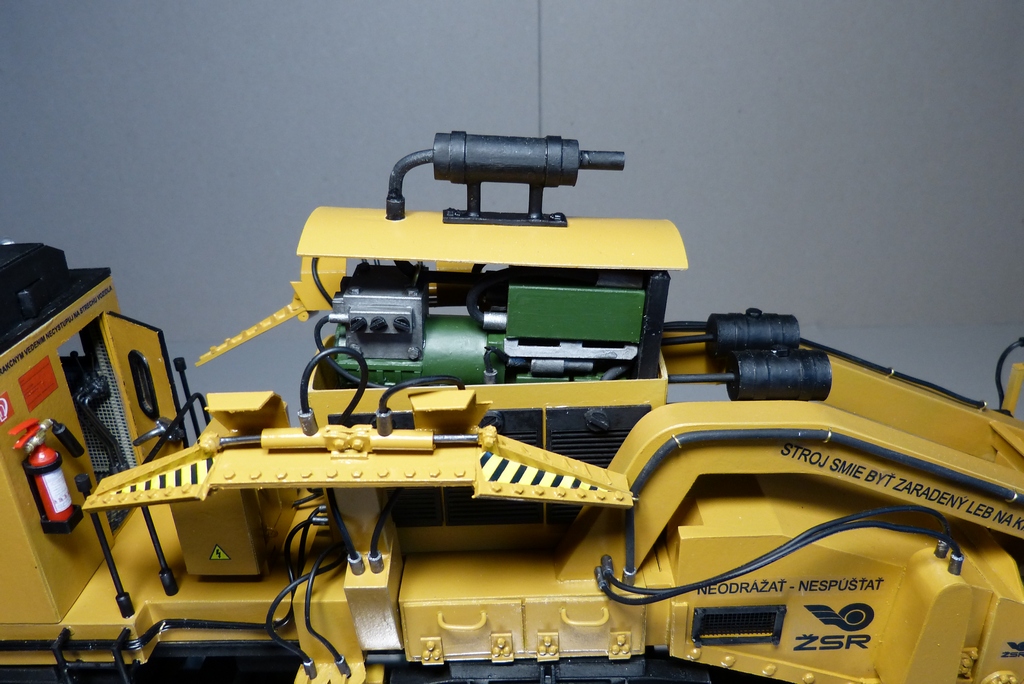 По мимо полного перечерчивания пришлось по нескольким фоткам переделать и добавить некоторые узлы,полностью была сделана ходовая , коробка передач,осевые редукторы,карданы и новая тормозная система,добавлена гидравлика некоторые элементы в будке машиниста.