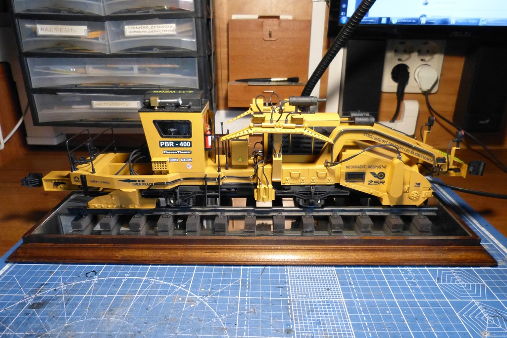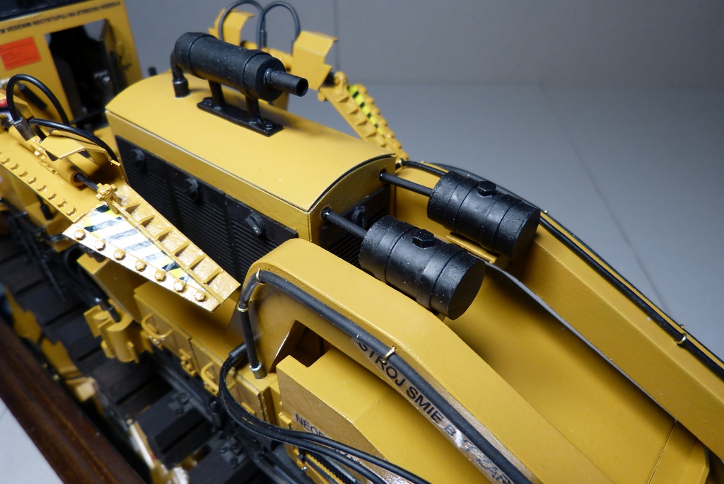 По мимо полного перечерчивания пришлось по нескольким фоткам переделать и добавить некоторые узлы,полностью была сделана ходовая , коробка передач,осевые редукторы,карданы и новая тормозная система,добавлена гидравлика некоторые элементы в будке машиниста.