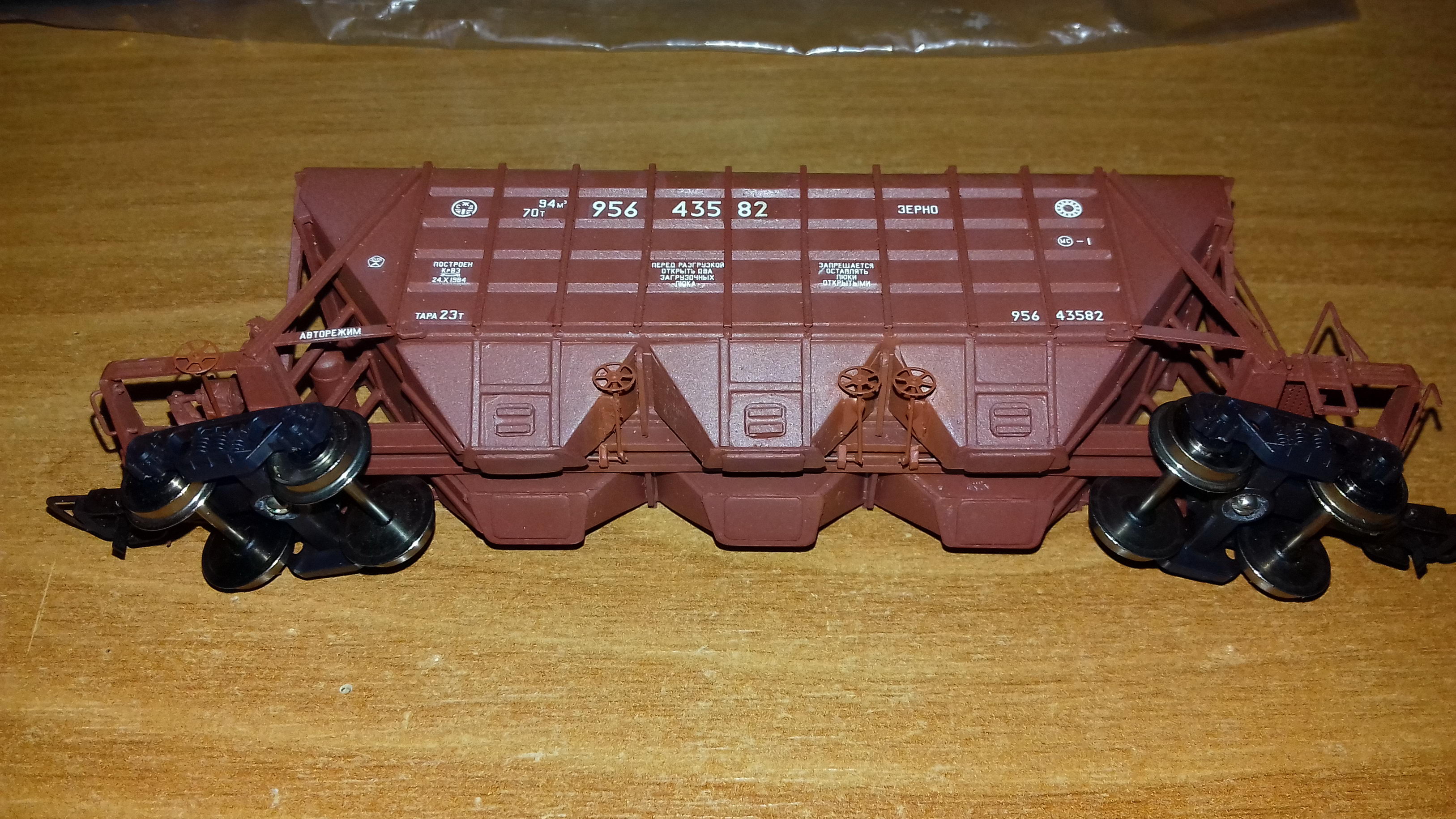 Сейчас же мог добавить небольшую доработку хоппера-зерновоза работы Виктора Орешко. у кого есть этих хопперы, знают, что тормозной и разгрузочные штурвалы отлиты из смолы и выглядят, скажем, не сильно аутентично - довольно толстые из-за отливки, четырехлучевые штурвалы, к тому же разгрузочные просто приклеены осями к бункерам без всякой имитации самого разгрузочного механизма. Решил это подправить, применив травленые штурвалы от Platinum Rail, припаяв их к осям из булавок. Также сделал имитацию трех разгрузочных рычажных механизмов.