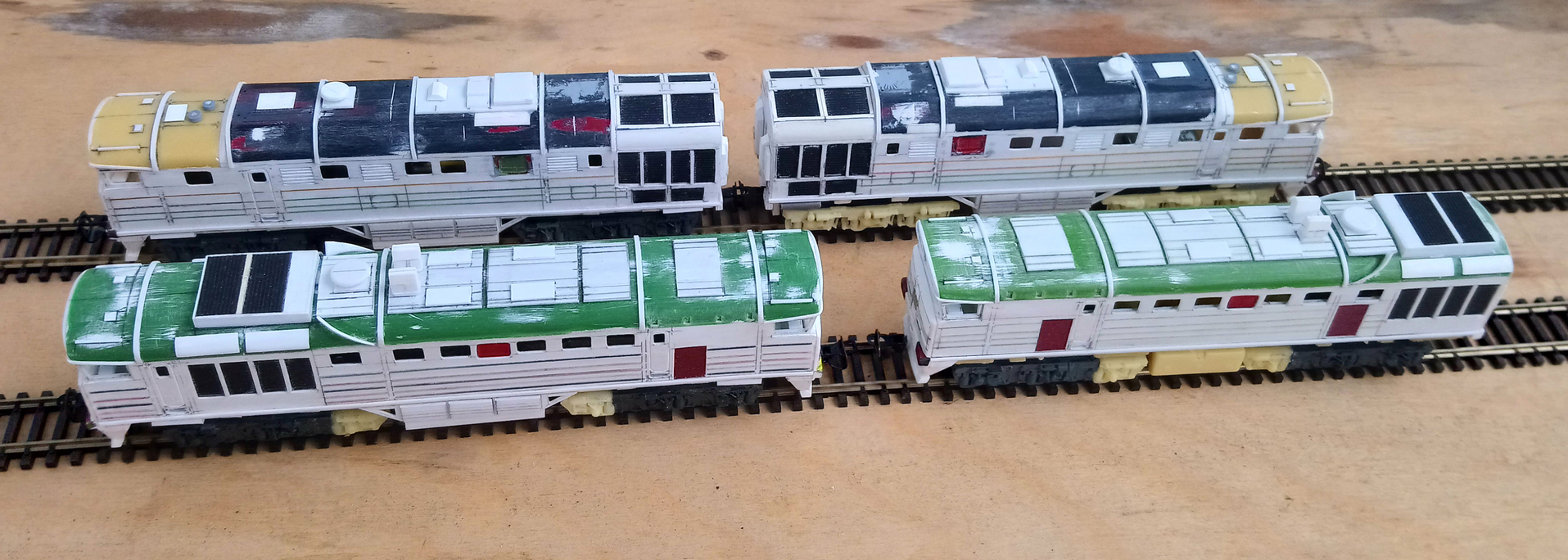 Небольшое обновление. Доделаны две безмоторные головы ДР1А. С плоской мордой - это переделка из ранее сделанной. Привел ее к общему технологическому уровню
