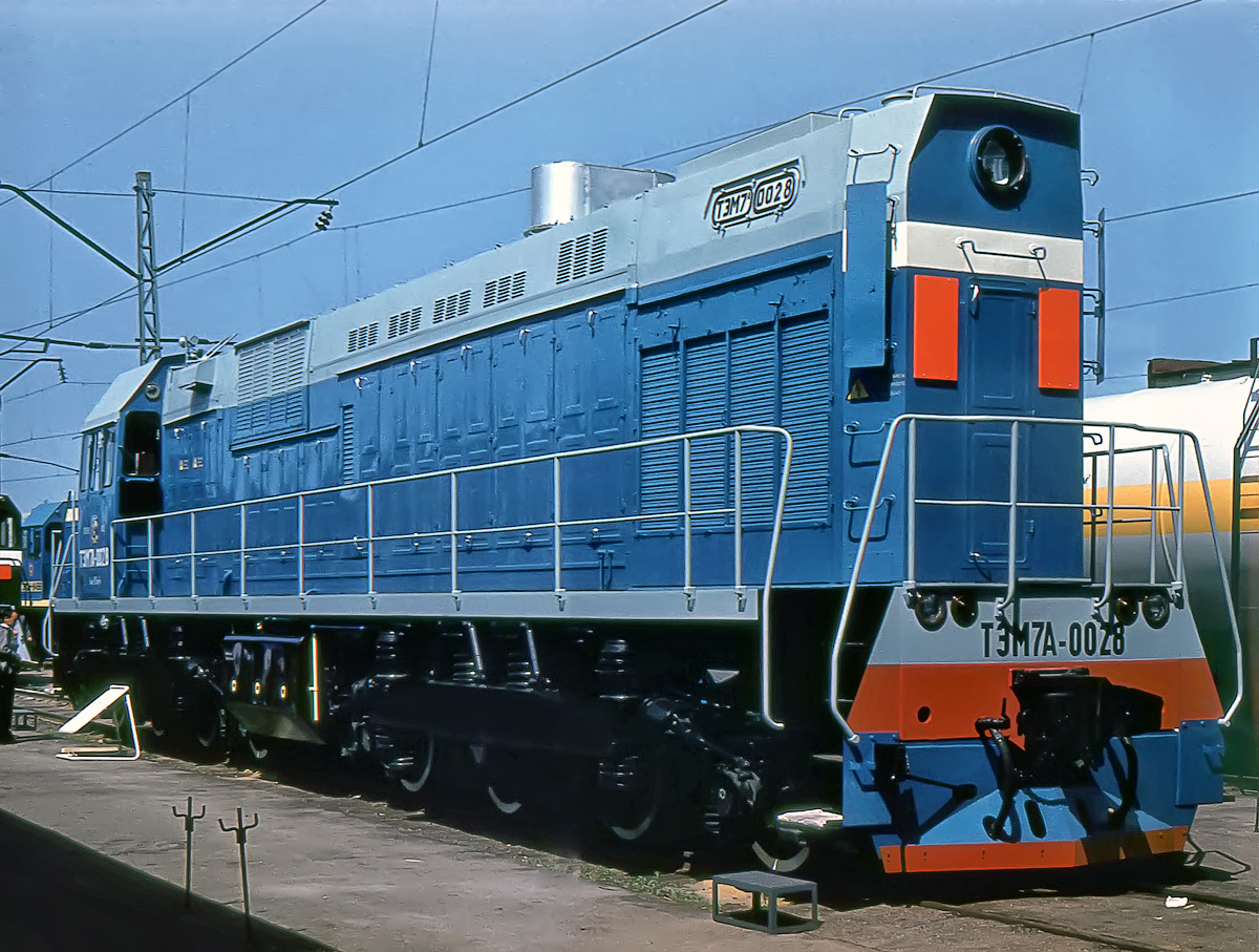 Модель тепловоза ТЭМ7А-0028 при солнечном освещении+фото прототипа.