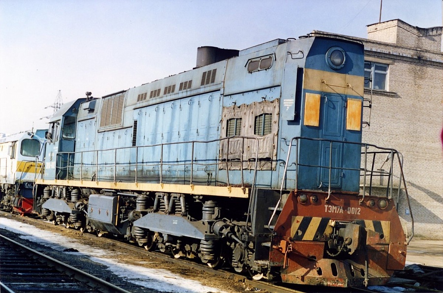 Тепловоз ТЭМ7А-0012 построен Людиновским тепловозостроительным заводом в 1989 году. Работает в Медведковском филиале ОАО "Промжелдортранс", г. Москва.