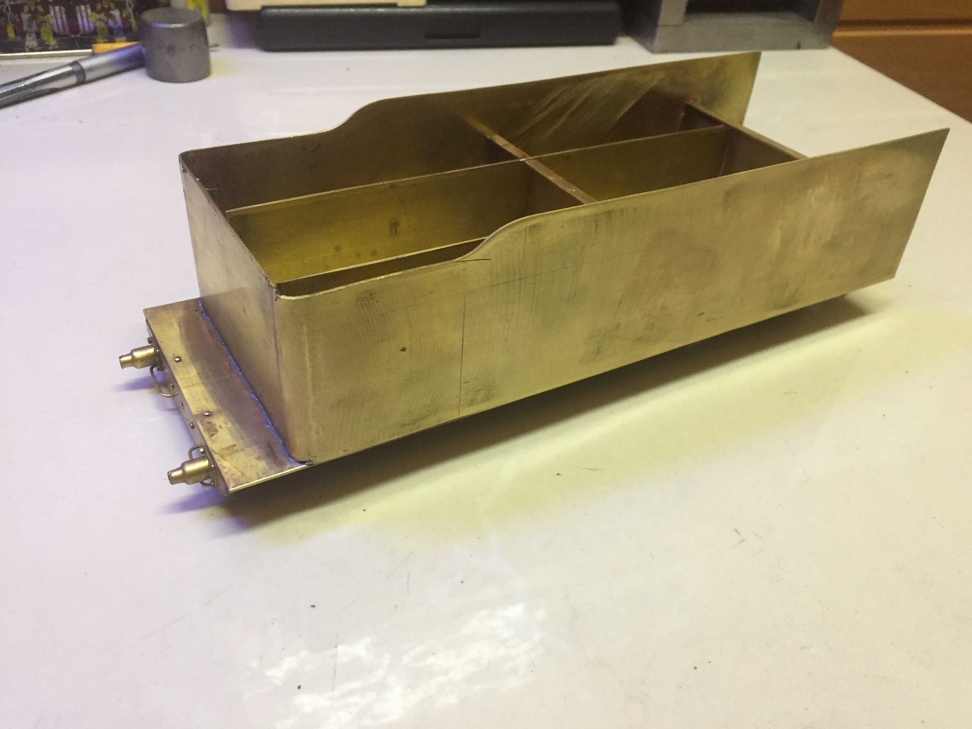 Дальше дело за обшивкой бака. Вырезал ее из листа латуни 1 мм и отжег.