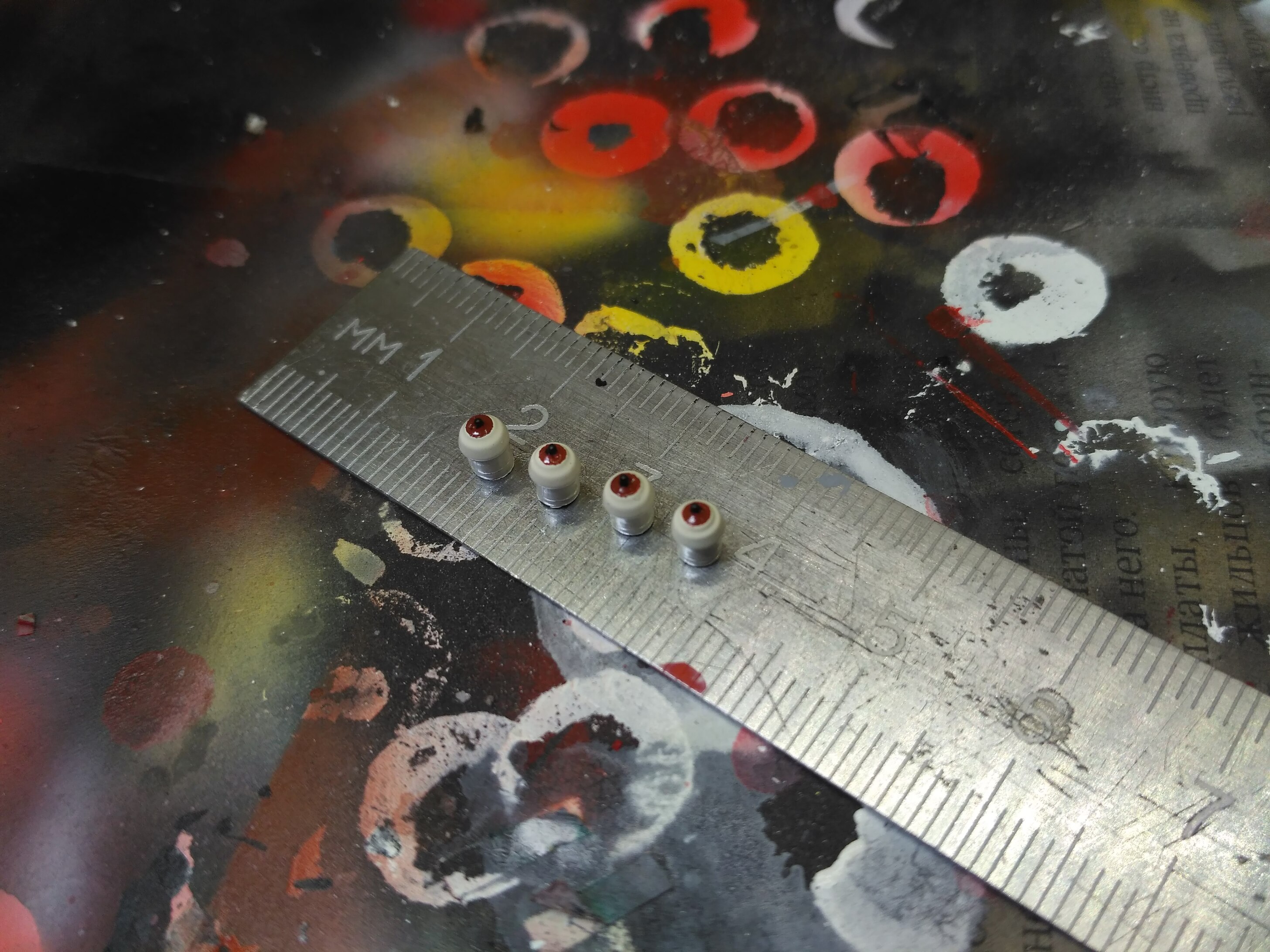 И такая возня с каждой деталью, с каждой мелочью. Куда проще было бы задуть все одним цветом сразу на корпусе локомотива! Это разрядник ( 3 цвета) плюс оградка серая (4-й)
