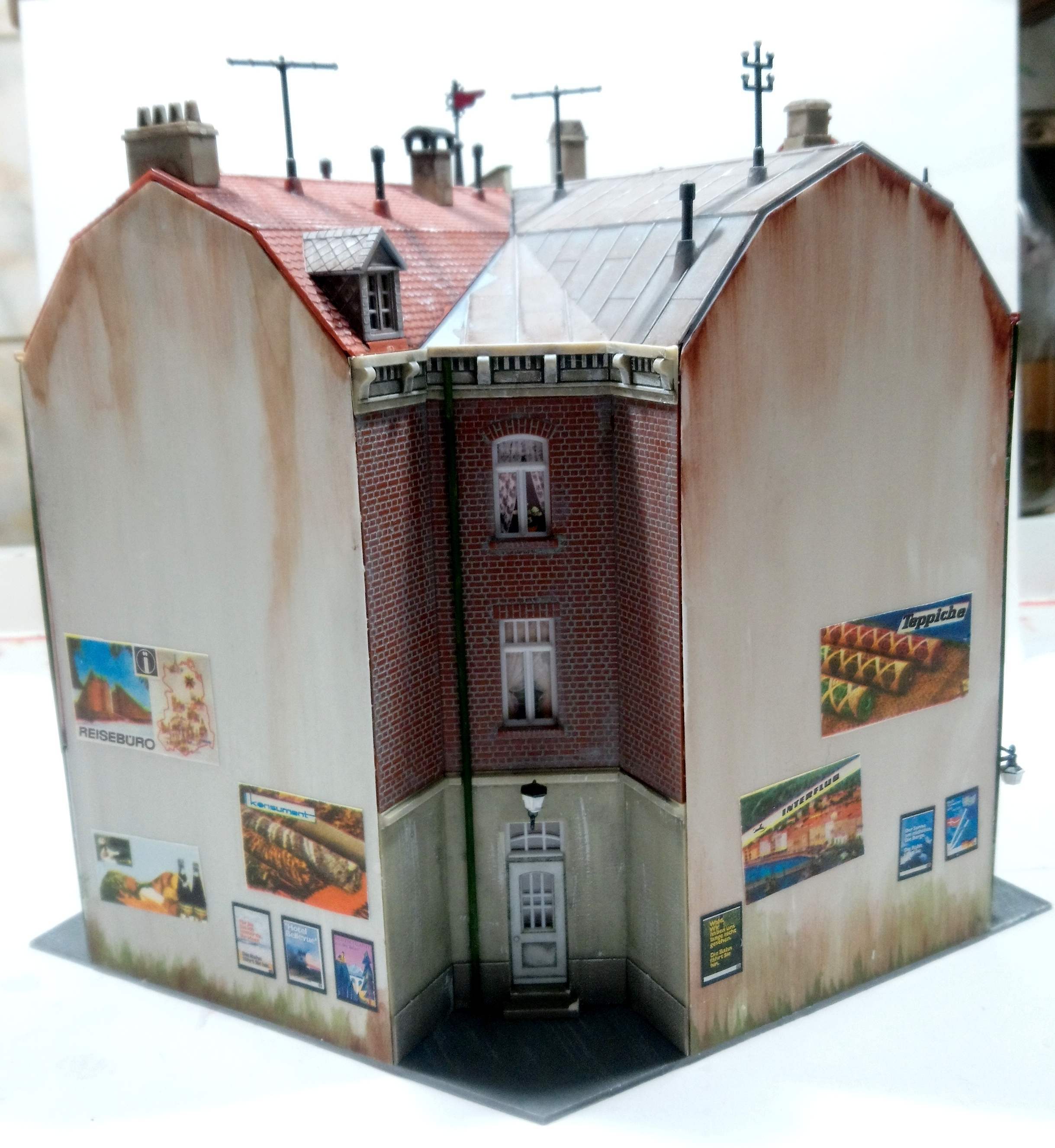 Пришлось местами проклеивать.После высеринга и сборки результат получился таким. Реально шикарная немецкая архитектура!Эффектное, крупное здание.Самое большое на макете.