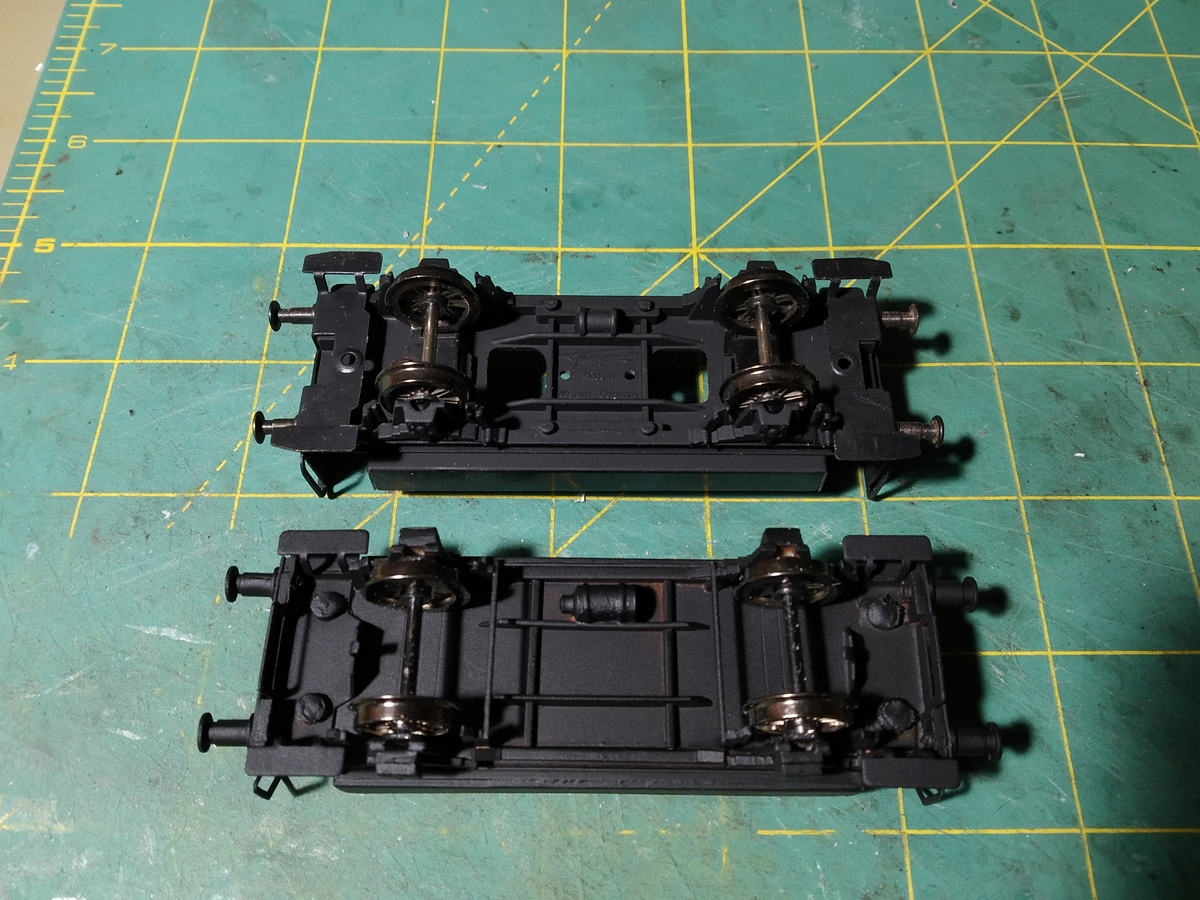 Эту пару вагончиков уже показывал. Слегка доработал по своему усмотрению и место им, в общем-то, в теме доработок. Но объём работы не заслуживает отдельной темы.