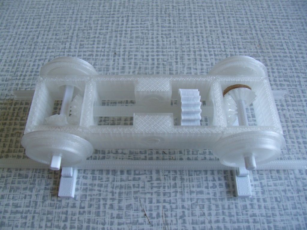 Озаботился ходовкой. Подобрал в Инете подходящую модель, немного подправил. Распечатал. Ну и рельсы со шпалами тоже пришлось печатать.