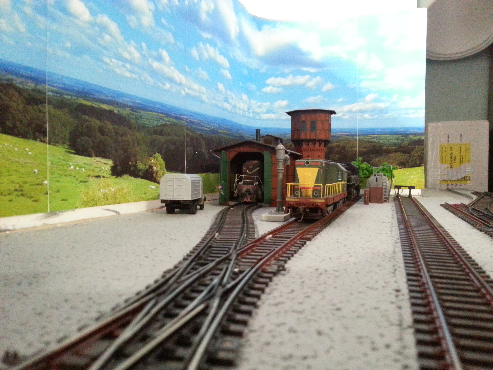 Как утверждают друзья, успешно пережитый Новый год прошел. За выходные в новом году поклеил пейзаж, что привело меня в жуткое расстройство, клеить обои явно не моя стихия. Покрасил основание, избавившись от белого цвета, благо дочка помогала, ну и разложил рельсы по блок-участкам. Получилось как-то так.