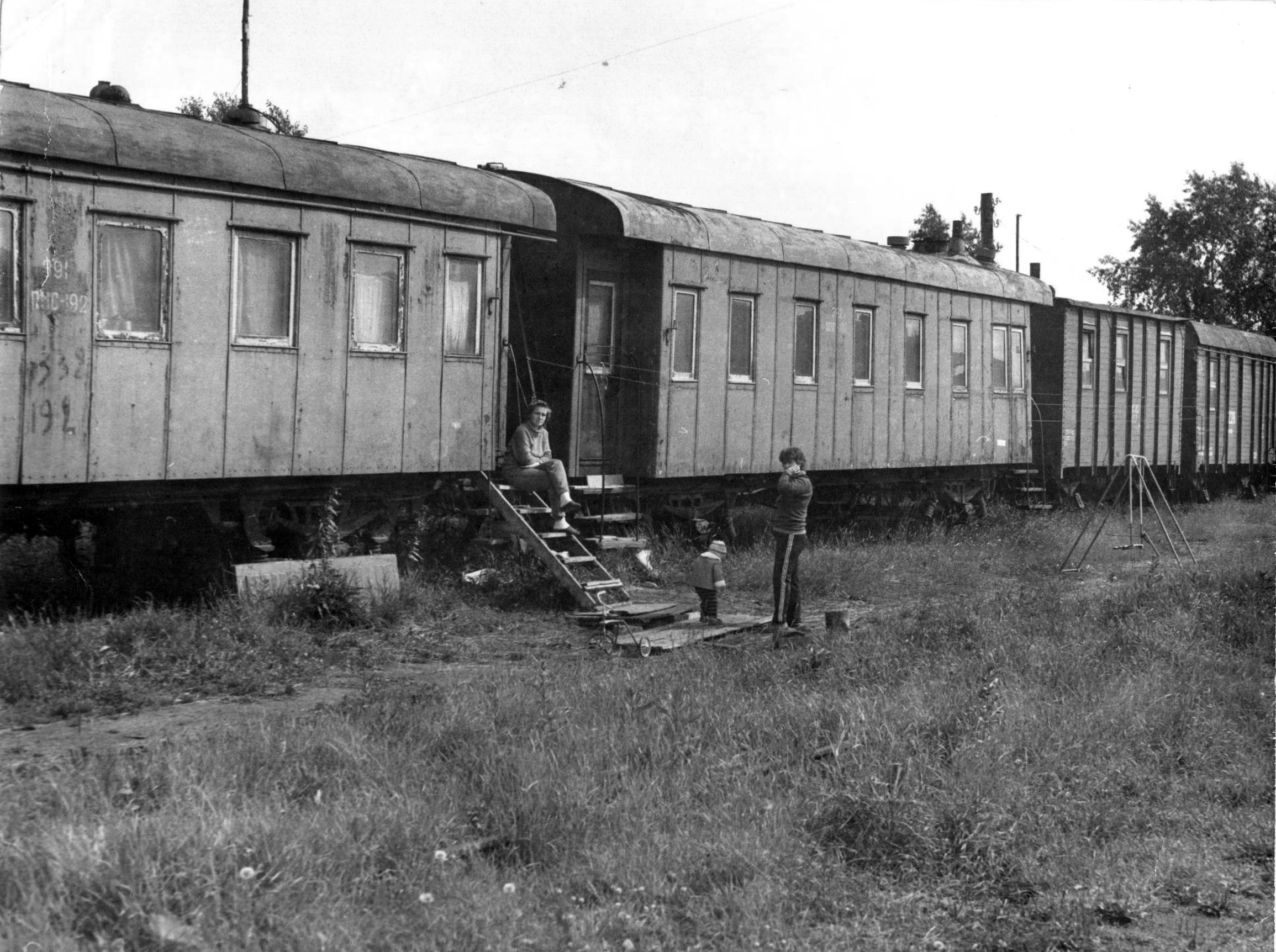 Один из вагонов уже мона поставить на землю, на кирпичиках или на брёвнах, вросшим в землю уже, рядышком с теми что на рельсах..., что бы они все вместе образовали такой "миленький" дворик... и столб с рупором должен быть 8-)