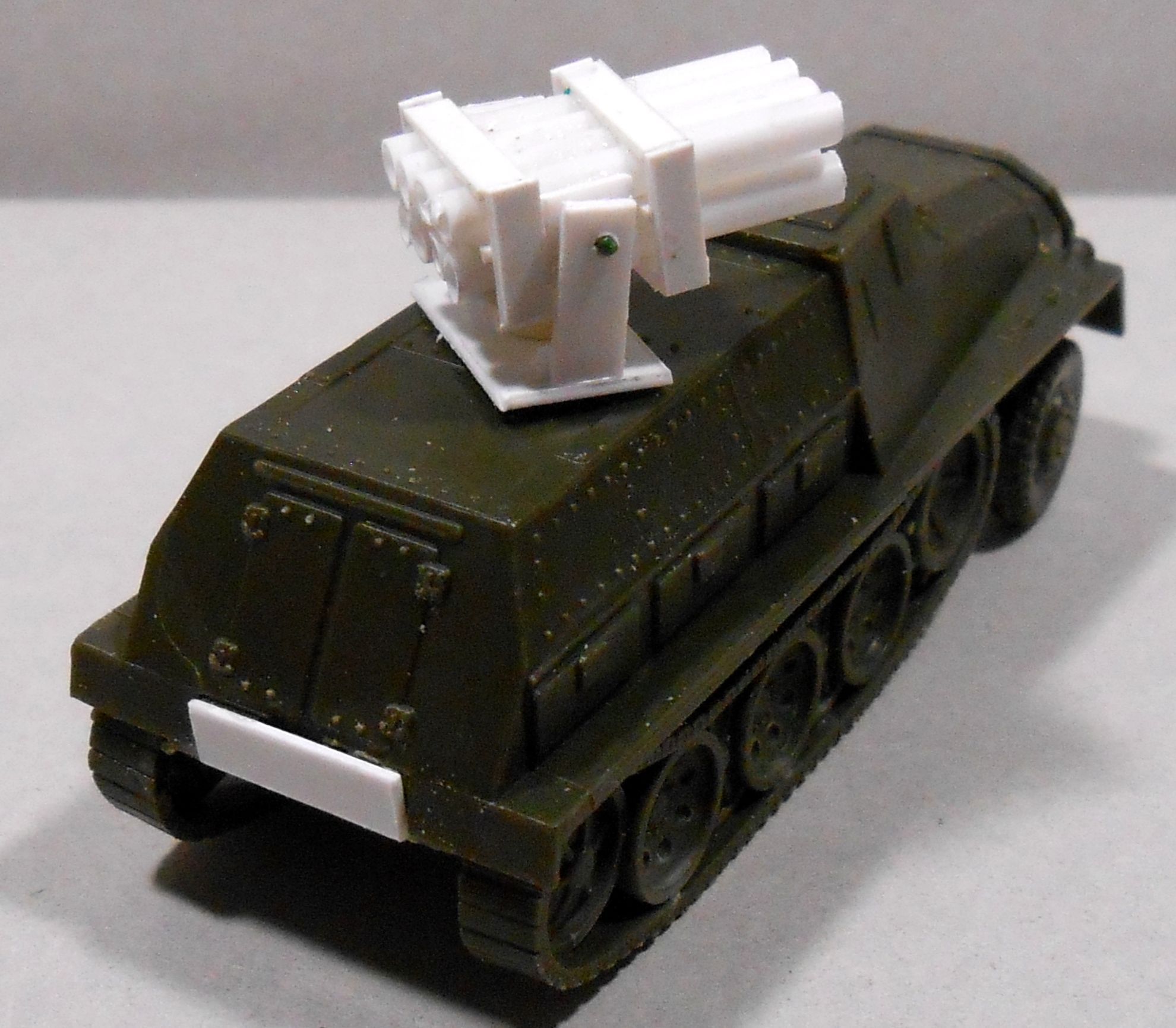 Ракетная установка окрашена также.Вращается на лафете,ракета поднимается,ноги складываются.