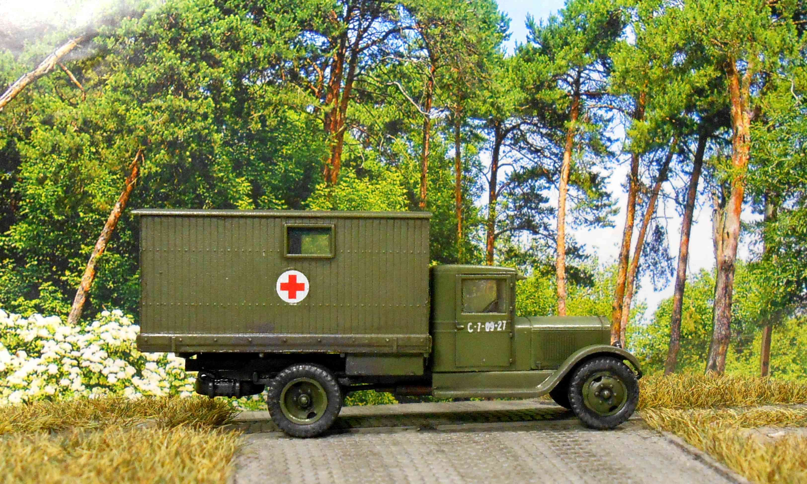 Первыми сделал ЗиС-5.Один санитарный,второй обычный солдатский корч.Окраска акрил