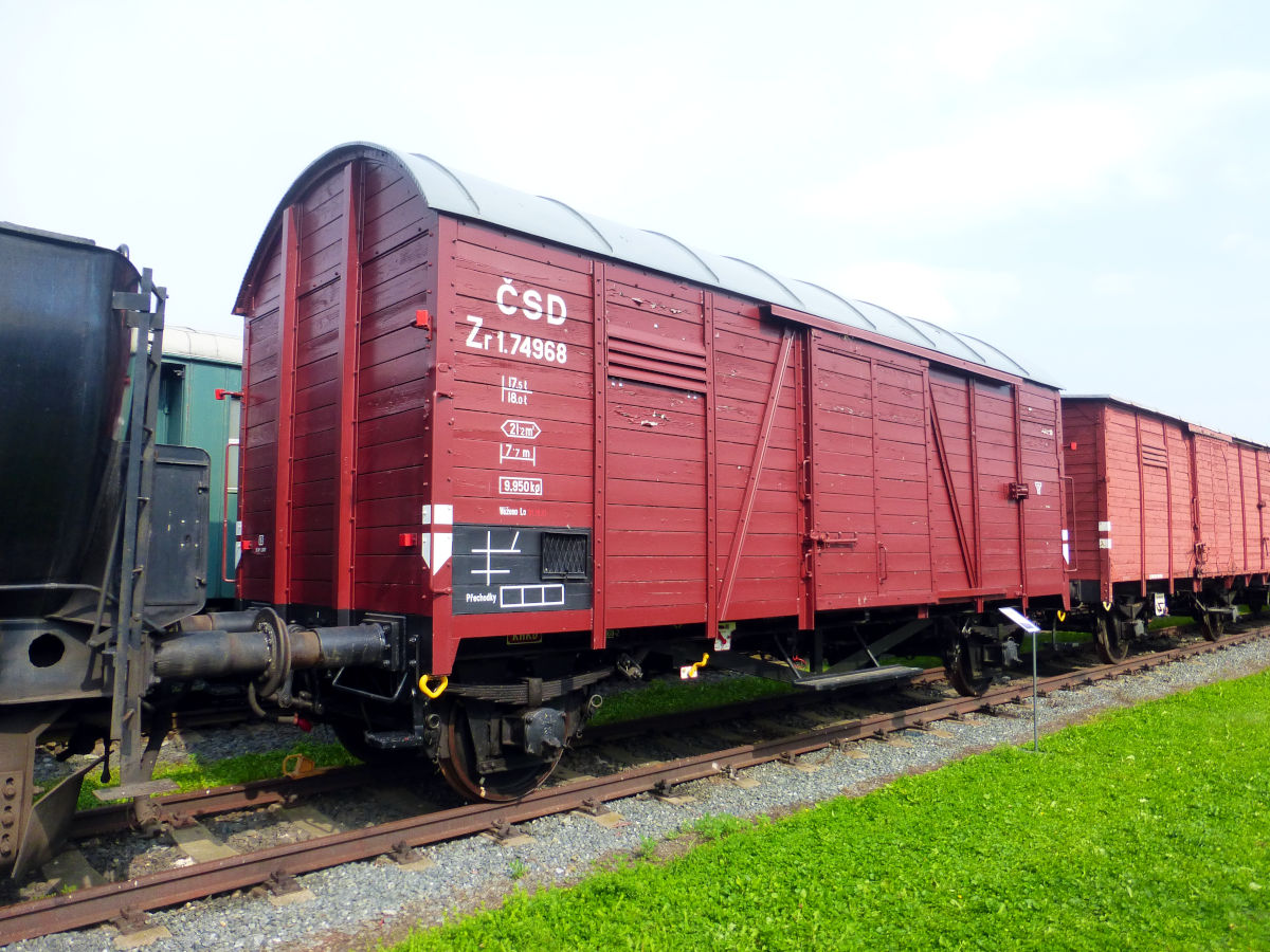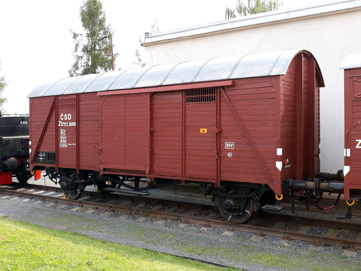 Второй был в момент моего посещения в помещении, стоял тормозным концом к стенке, за салоном, снять по-человечески было невозможно, радовало только то, что такой же точно вагон стоит в Лужне у Раковника в свободном доступе. Это ледник, постройки пражского завода Рингоффер. Обратите внимание на высоту двери и наличие трубочек для стока воды на боковых стенках.
