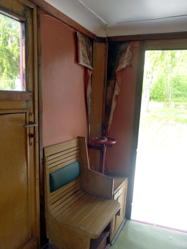 Добавлю, что машина довольно шумная по сегодняшним меркам, в салоне при движении нужно почти кричать. Тамбуров как таковых нет - они совмещены с кабинами, неиспользуемый пульт закрывается деревянным ролетом. Кресло для машиниста не предусмотрено, к тому же, переключение передач требует значительного усилия, сидя этого не сделать. Во всем же остальном - вполне комфортное средство передвижения, учитывая, что создавалось оно для работы на местных линиях и средняя продолжительность поездки не превышала полутора часов.