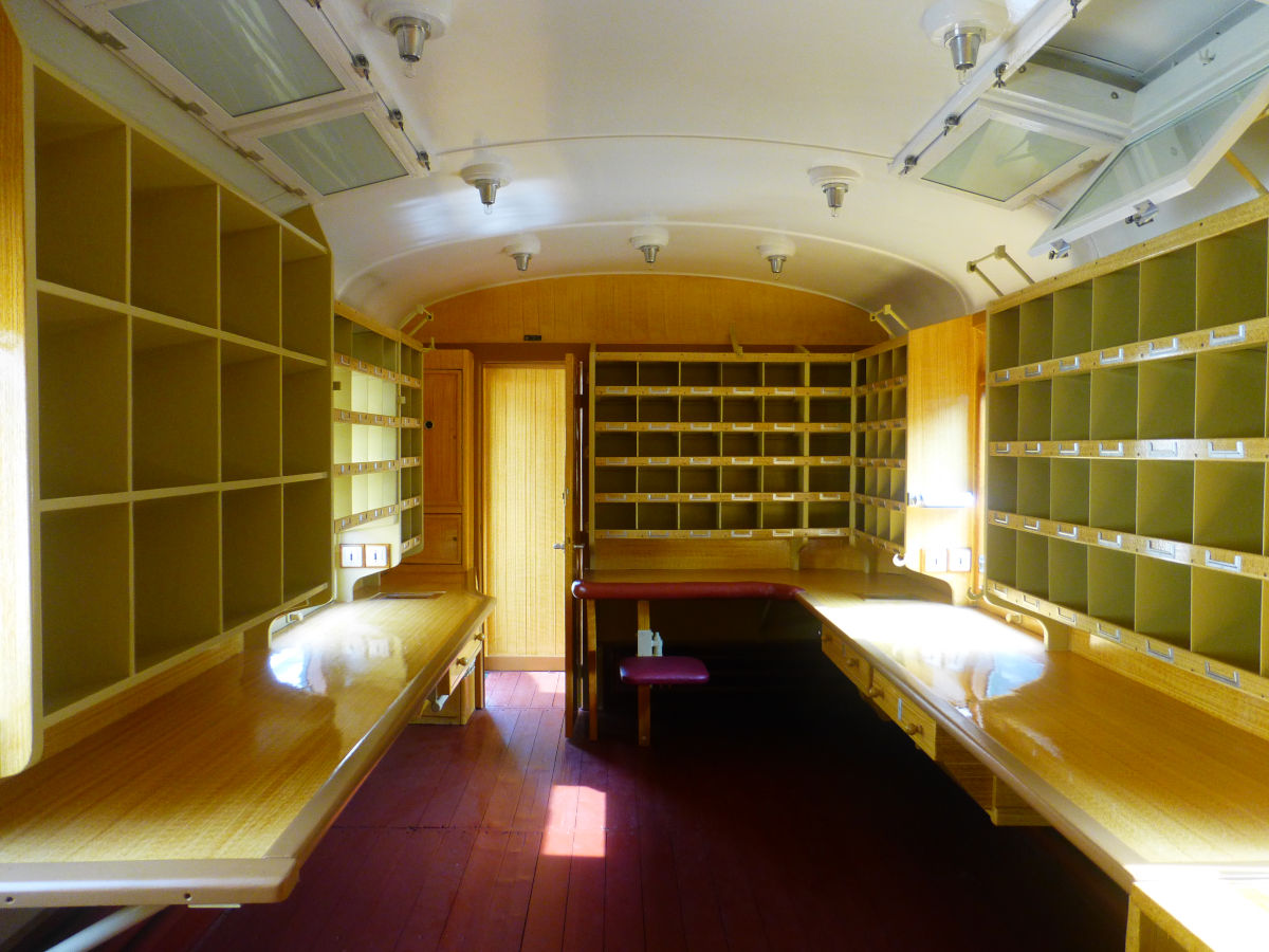 Оборудован паровым отоплением и электрическим освещением, но оборудование для газового освещения (бак для светильного газа бросается в глаза) также было установлено.