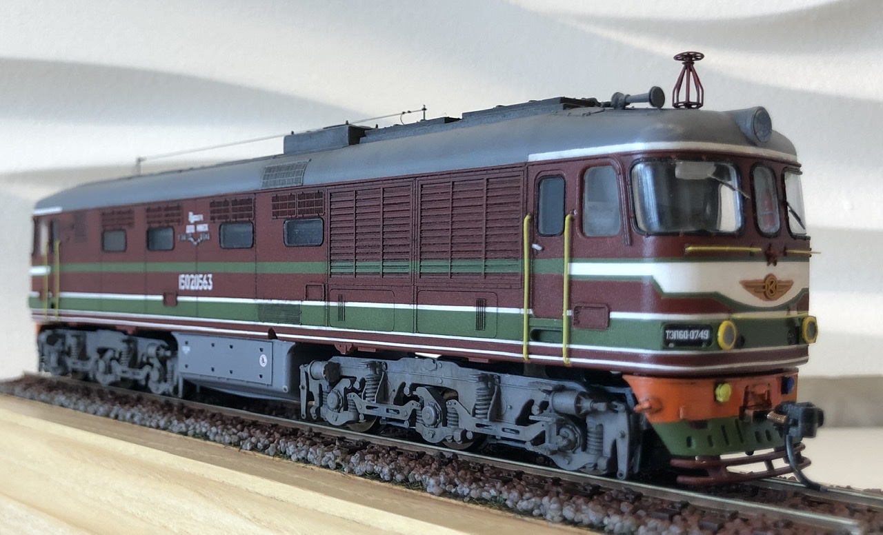 Самый большой косяк в покраске.. решил я акриловую краску покрыть лаком серии LP, что б покрытие было более прочное.. Когда покрасил и поставил заготовку на полку, через неделю примерно, начали появляться микро трещинки, краска LP, начала разъедать акрил.. Я не стал ничего исправлять, получилось что то типа кракелюра.. и как бы эффект не первого слоя краски, как на настоящих локомотивах, внутри трещинок краска светлее оттенком чем база.. Но всего этого с полуметра не видно..