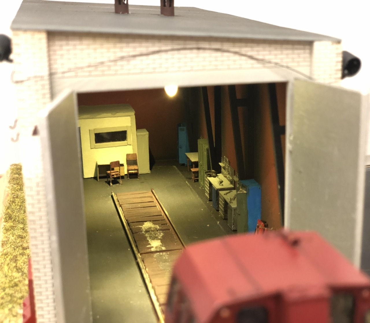 Туалет, будка на переезде, скамейка, ящик для инструментов, ключи и грабли - картонные заказывал в лазерной резке (фундамент, перила, крышу, лестницу и шторы в будке делал сам). В качестве фундамента использовал бардюры в 1/35 масштабе от фирмы «Таран», лестница и перила сделал из уголков от фирмы «ZIPmaket”. Крышу изготовил из банки от редбула), шторки из бумажных полотенец.