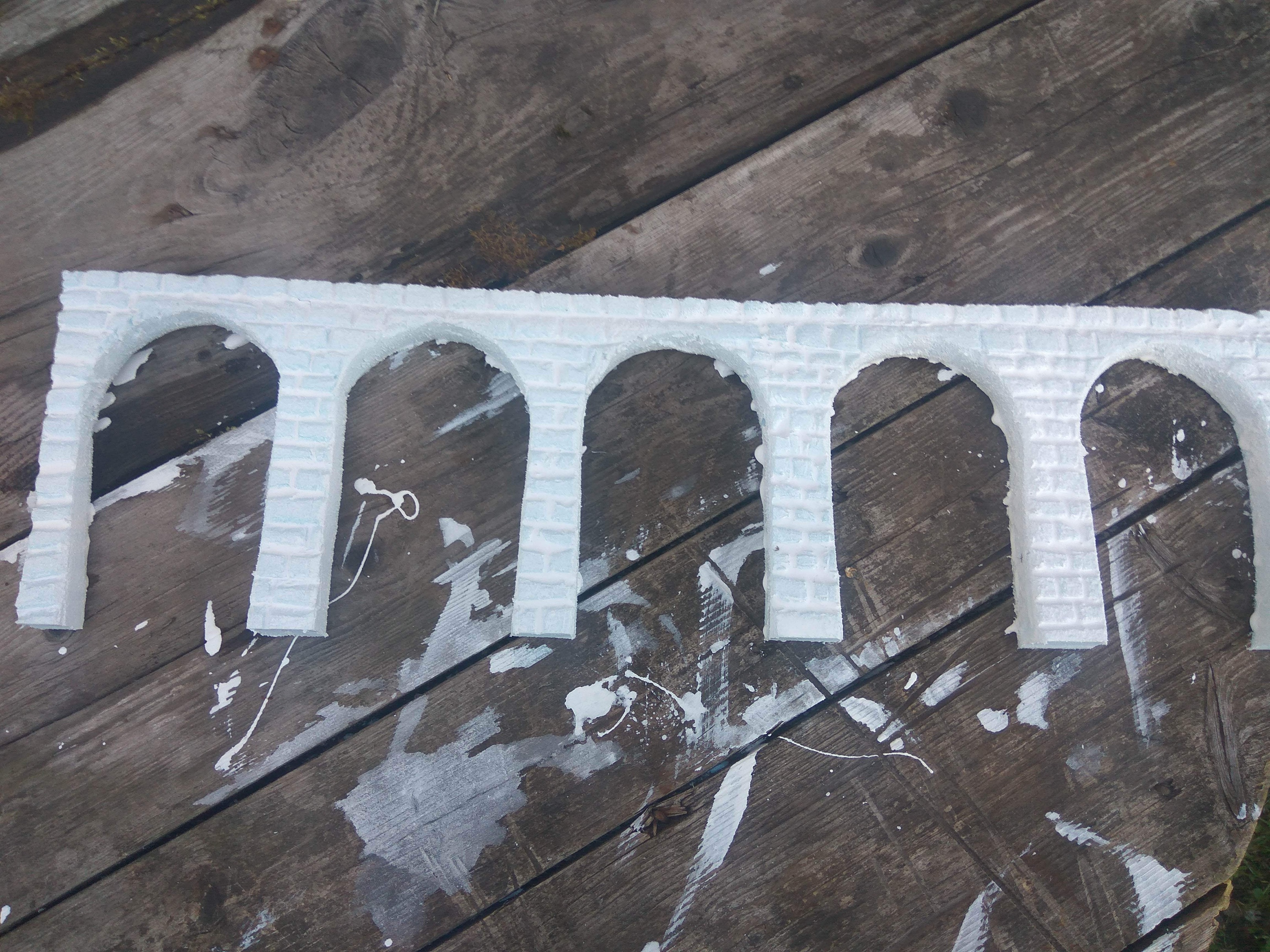 Так, проблема була у фанері, а точніше у її довжині. Якщо б довжина фанери була велика, можна було її вигинати, щоб забрати гострі кути. При використанні пінопласту із запасом висоти, його сточував шліф-шкуркою та робив ухил до центру радіусу, що додавало реалістичності при проходженні повороту. Також фанеру треба лобзіком різати, важко обробляти. А найголовніше - це жахливий резонанс, шум (пустота з низу підсилює шум), коли потяг їде. Пінопласту має теж мінус - це пил, який утворився при обробці, постійно треба пил забирати.