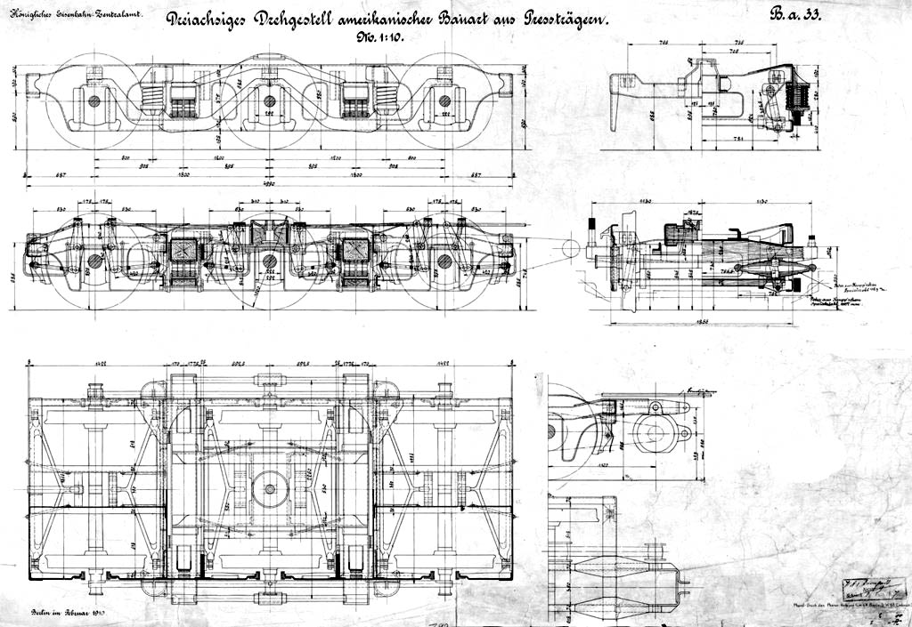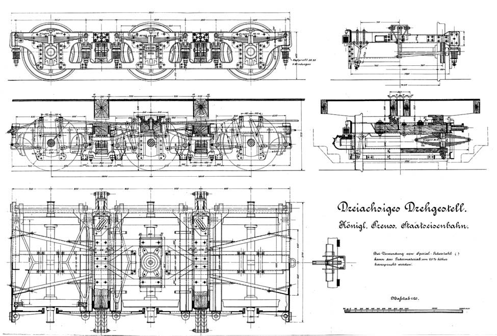 позднее, самым распространенным типом 3-осных тележек стал "Прусский стандарт":