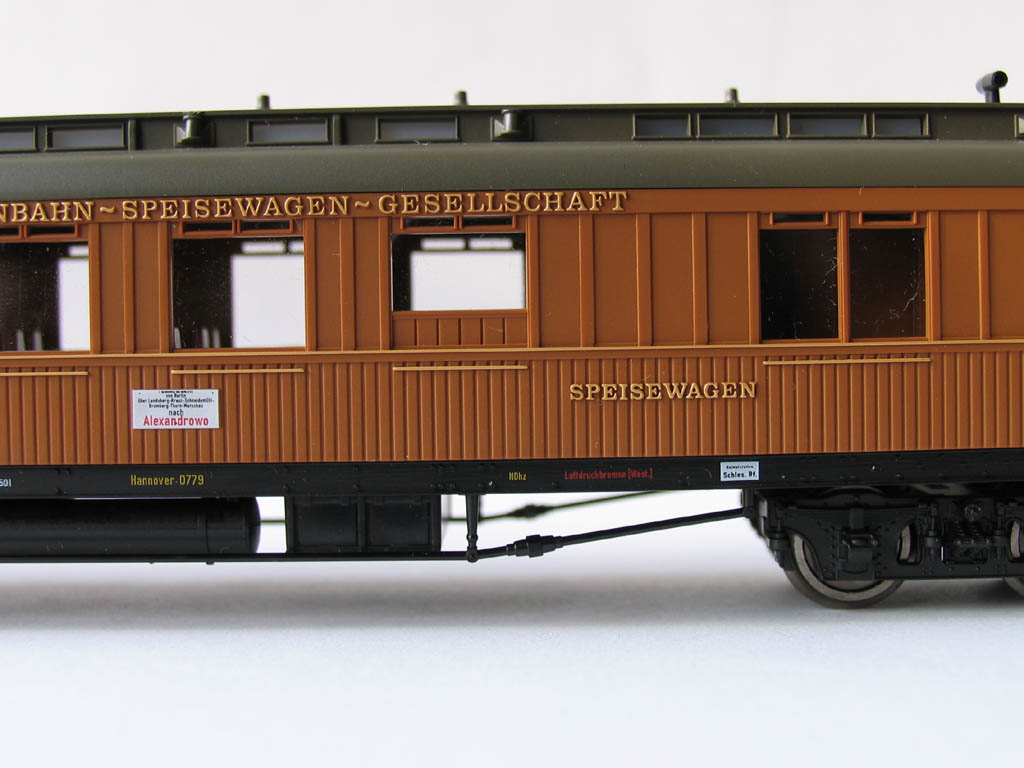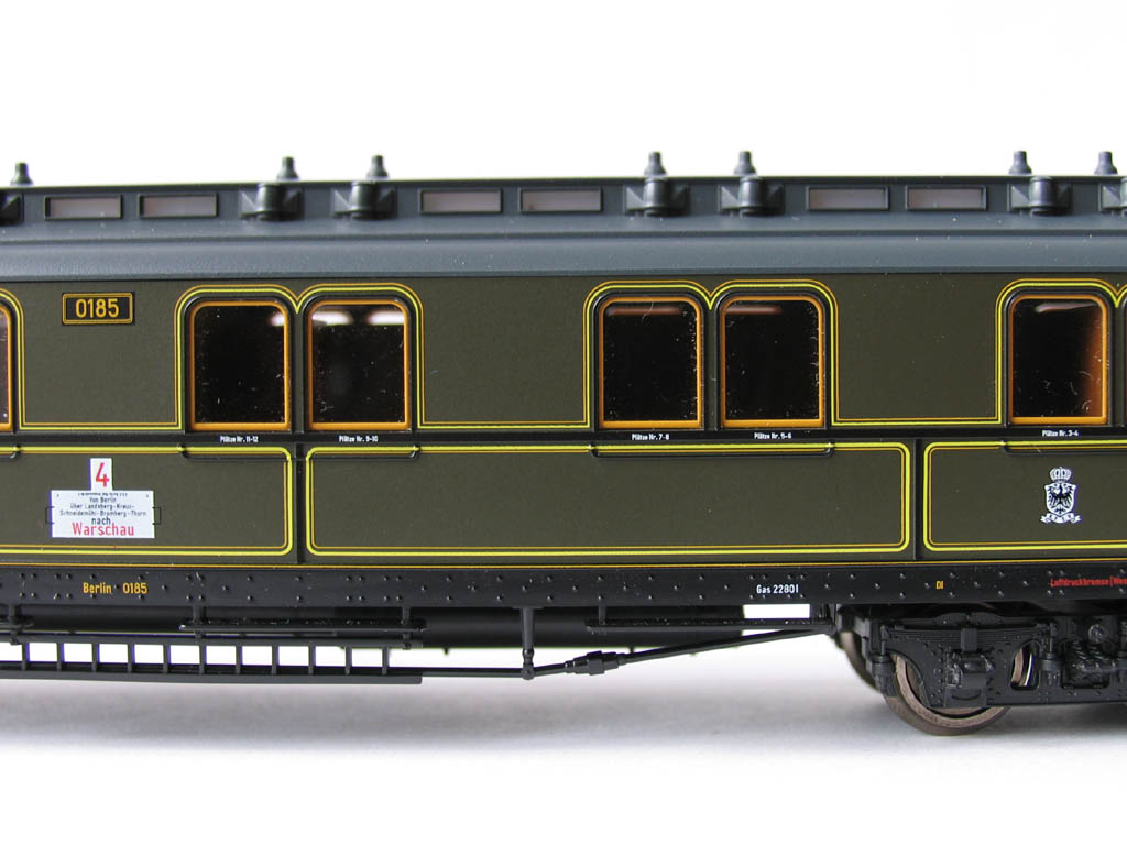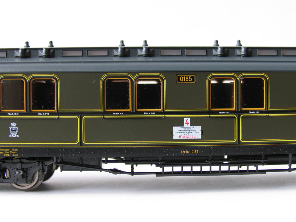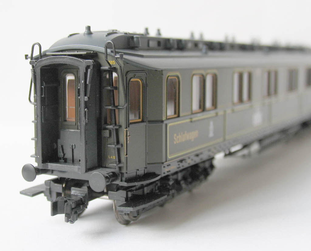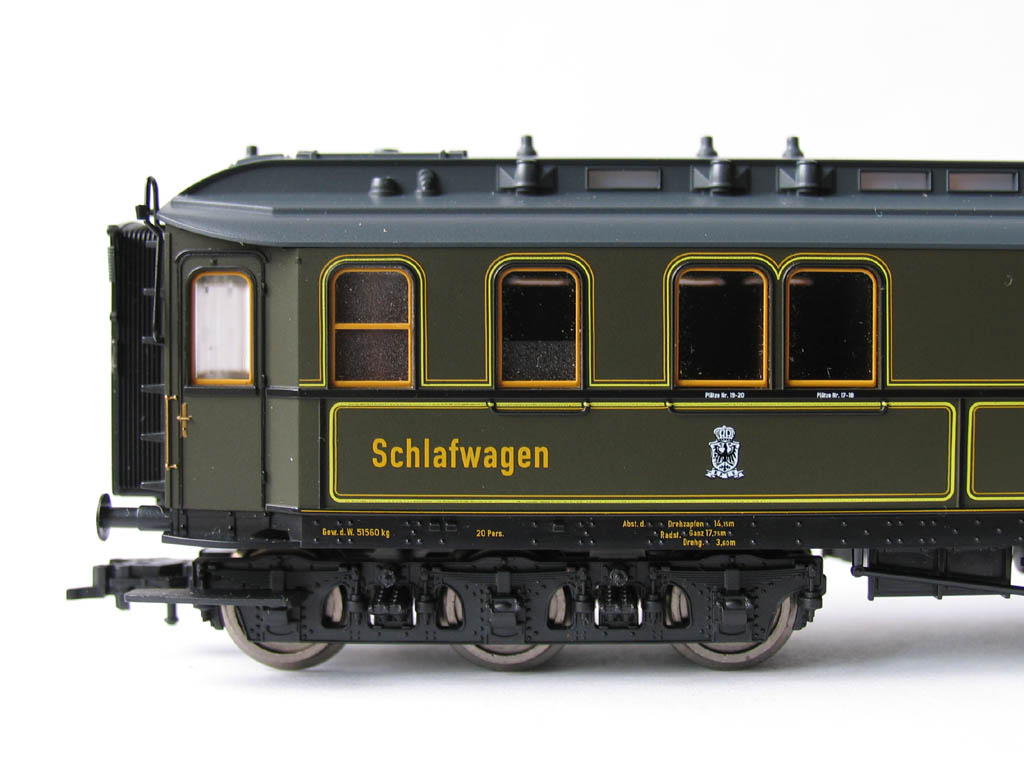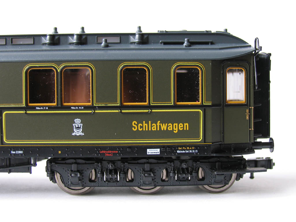 - в отличие от ранее выпускавшихся прусских вагонов (в наборах 1885/4885 и 1898/4898), у спальника новая рама с имитацией заклёпок, и 3-осные тележки: