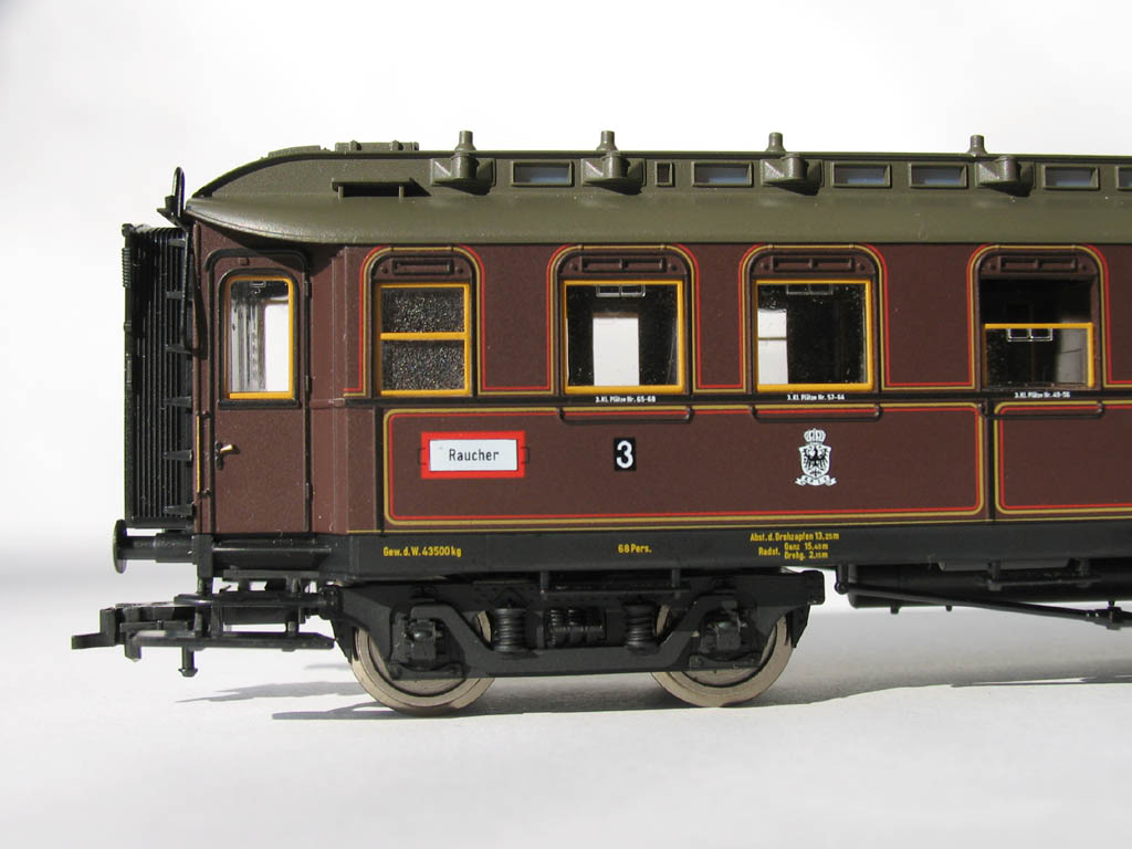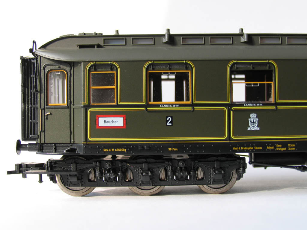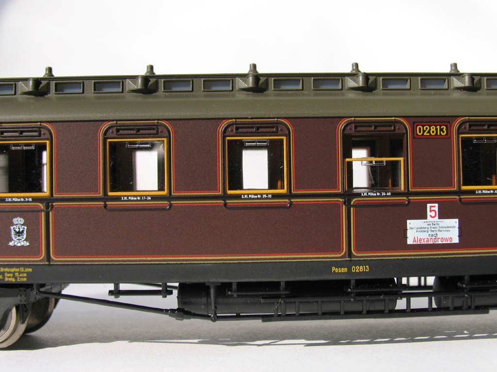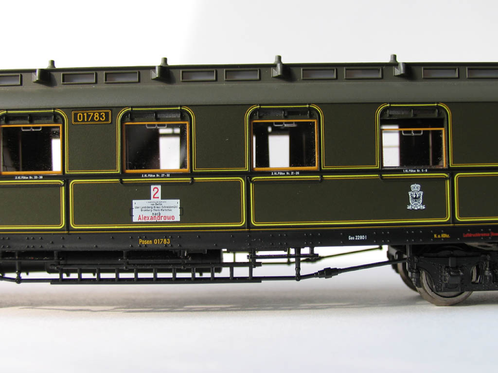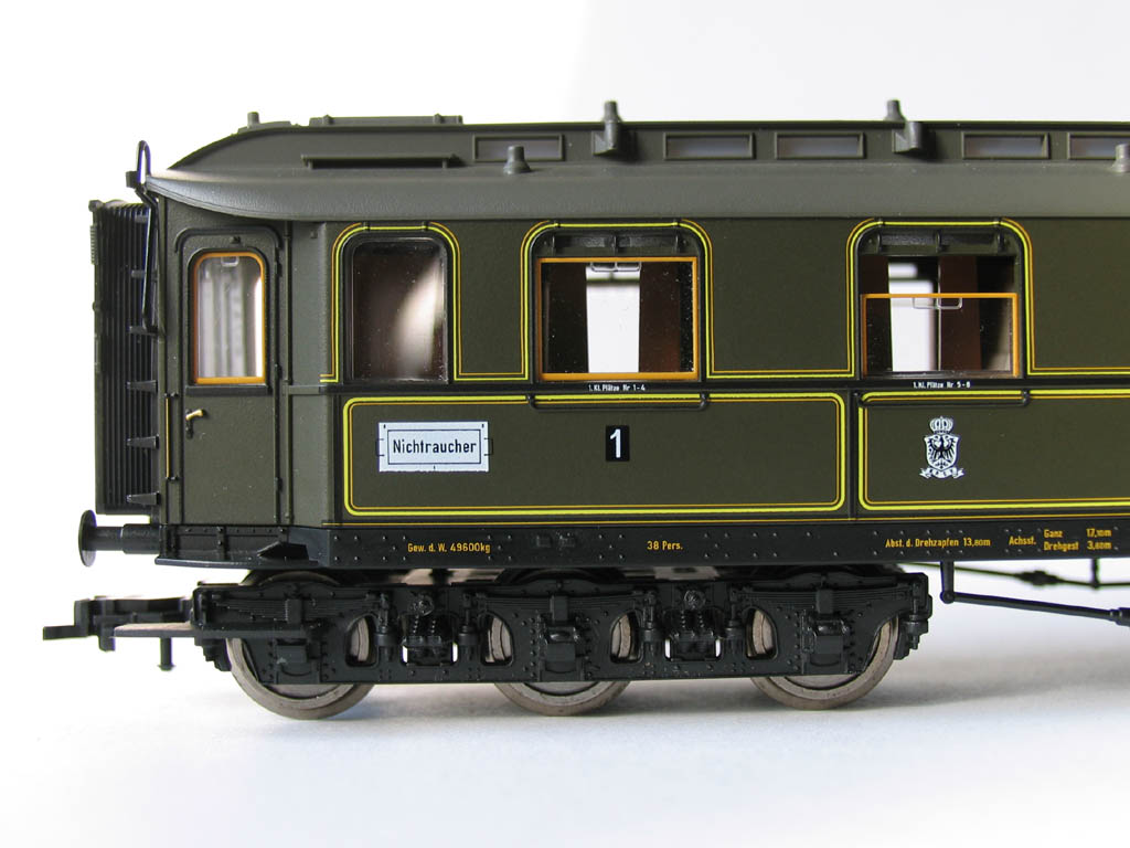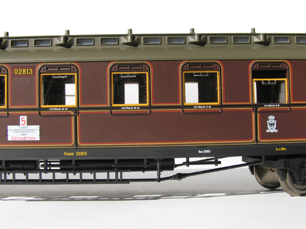 - в отличие от ранее выпускавшихся прусских вагонов (в наборах 1885/4885 и 1898/4898), у спальника новая рама с имитацией заклёпок, и 3-осные тележки: