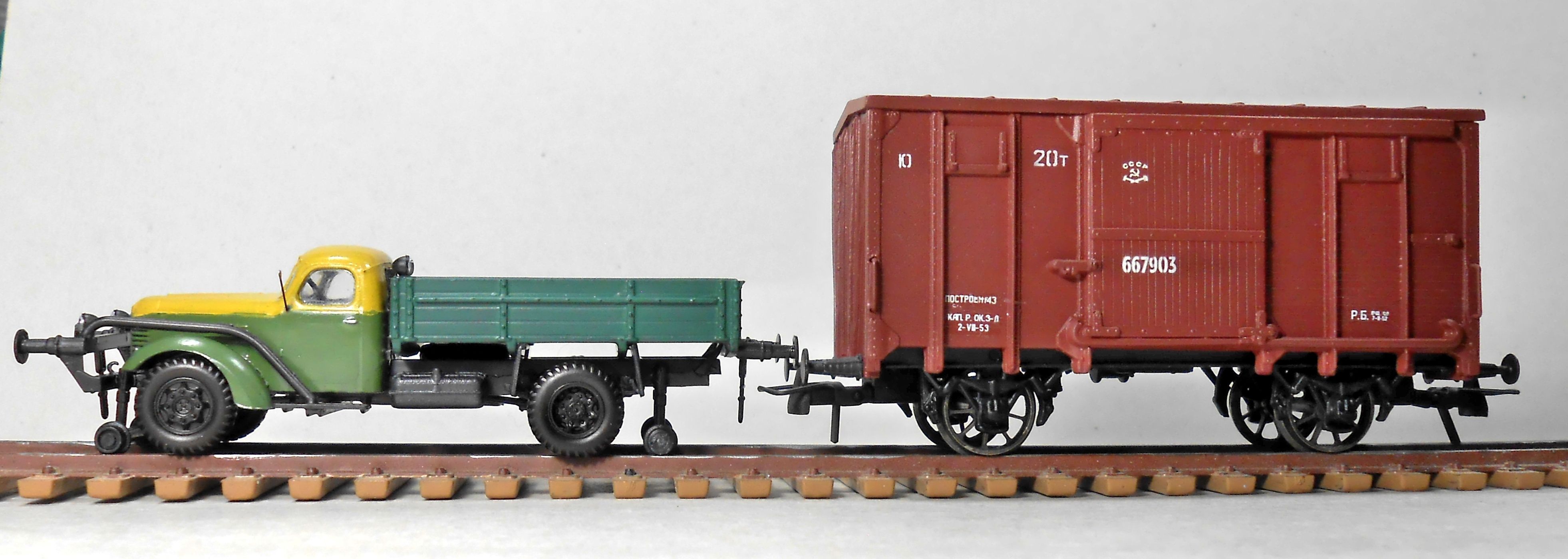 Рядом с товарным вагончиком кажется конечно совсем мелюзгой .. но, масштаб у него, у этого ЗИСа очень точный! я сам промерял когда собирал похожий, и вообще присоединяюсь к мнению, что эти наборчики ZZ для сборки очень хороши и приятны!