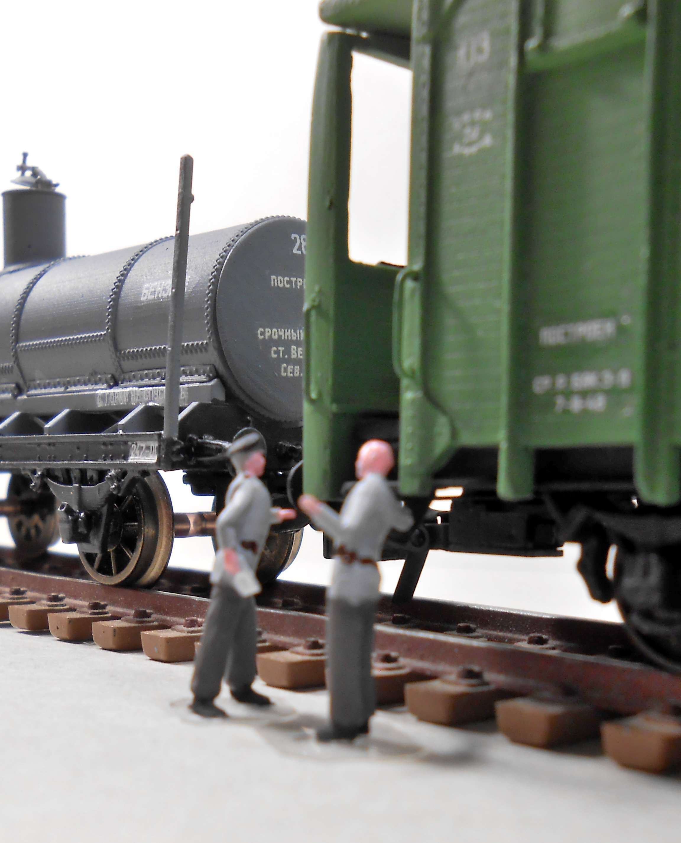 Пара фигурок машинистов тоже были для теста.В буферах пролиты пружины и есть просветы.