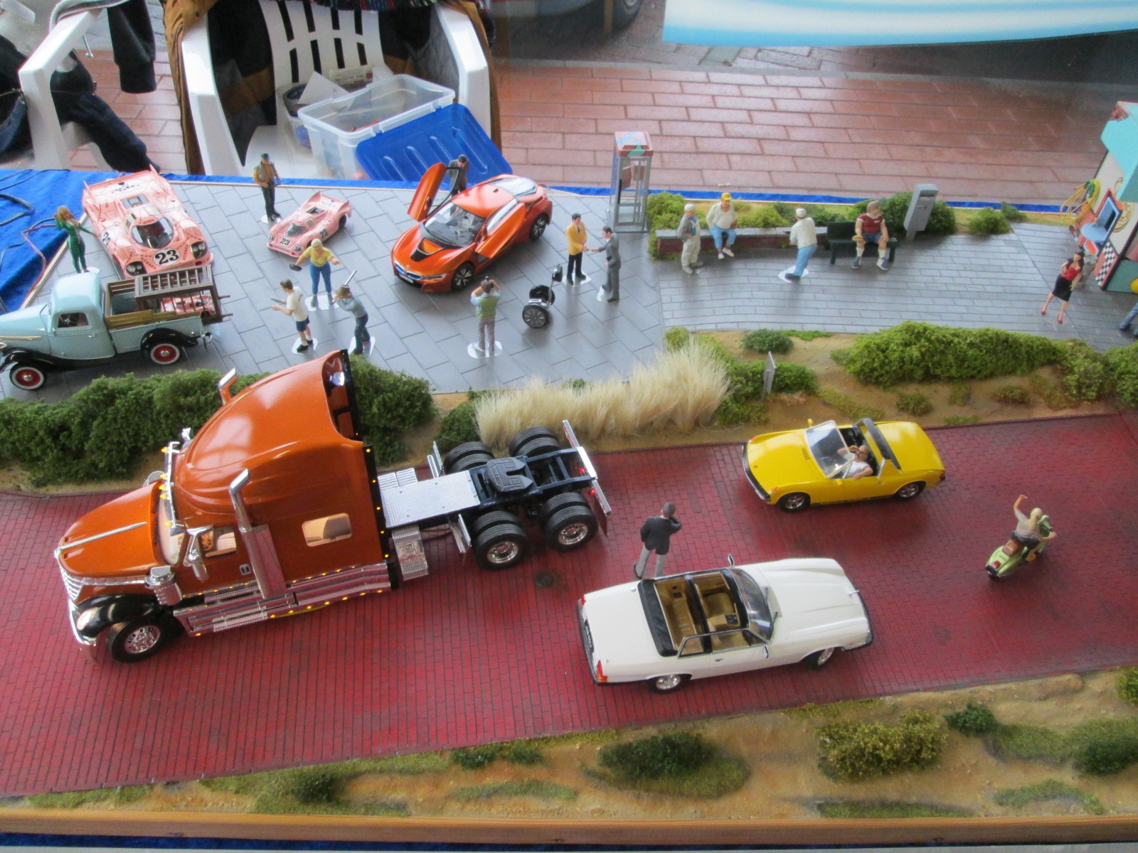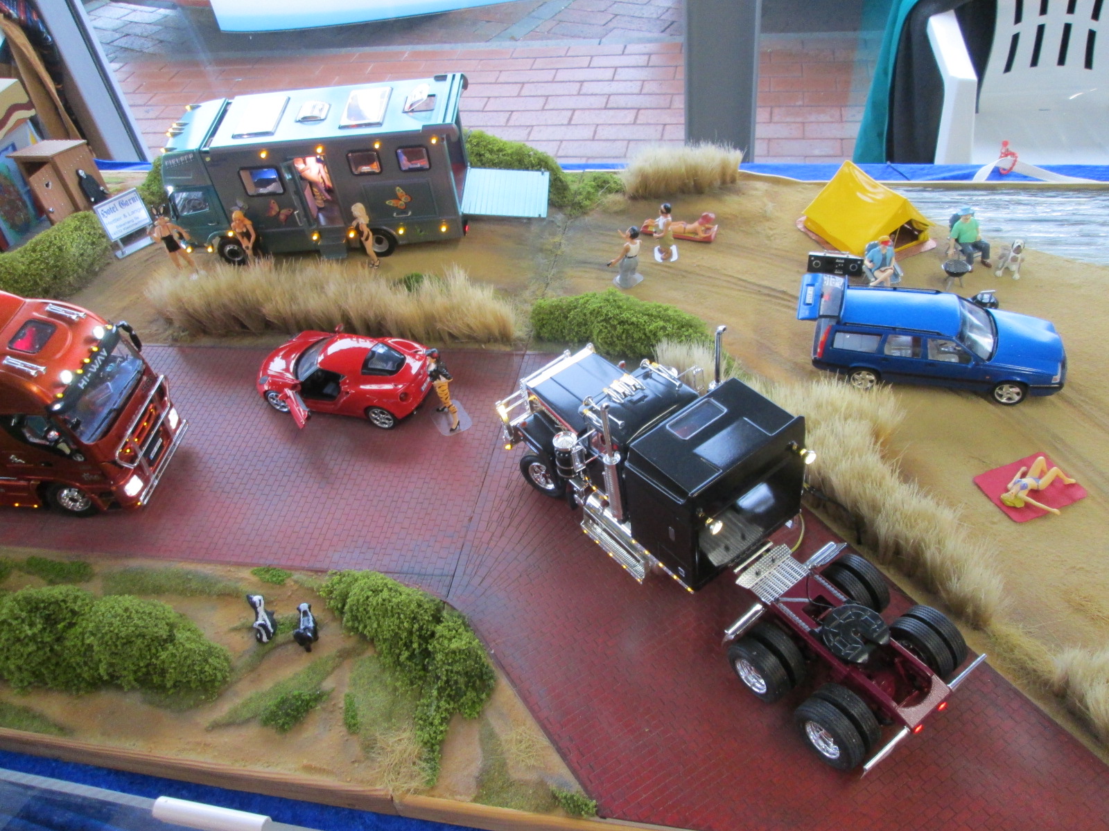 продажа там тоже шла во всю, а вот возле стола с товаром от фирмы Noch я просто залип выбирая себе потом что-то, того что не было у одних смотрел у других, например чем можно было имитировать воду. юыл вариант пленка, потом масса в баночке и последнее не понятно что двух сортов - 2 тюбика какой-то массы привысыхании становится прозрачным, или один тюьик и к нему пара маленьких баночек с красителями. Пока ничего не брал, но пленка была дешевым рещением, масса в баночке как йогурт самым дорогим, а в тюбиках средней ценой