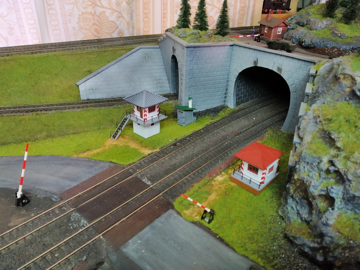 разместив его ближе к порталу тоннеля и добавив штакетный заборчик вдоль путей.