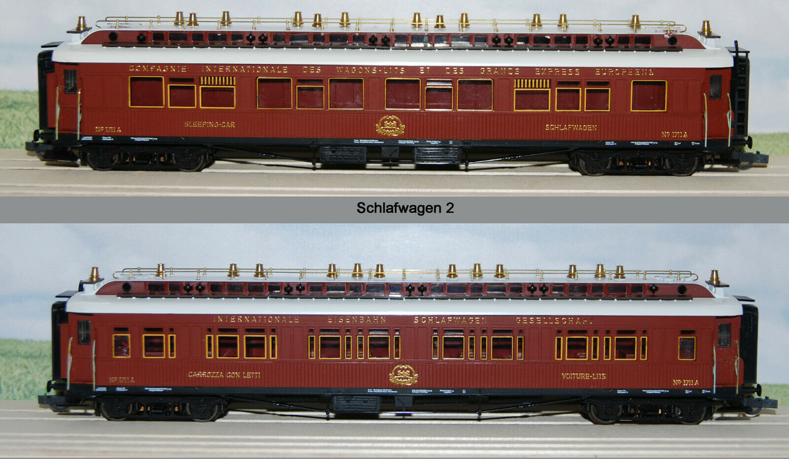 в оригинале, оба спальника из серии вагонов (№№ 1772-1783) тип R18, выпущенных Maschinenfabrik Augsburg-Nürnberg A.G. (MAN) в 1908 году, ходивших в составах Ostende Wien Express и Ostende Karlsbad Express, боковины рам вагонов этой серии в оригинале действительно были белыми, как на моделях.