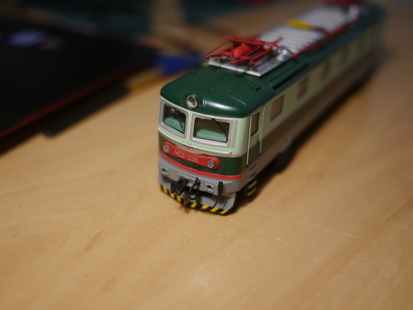 Покупал собственно под конверсию в ЧС2, но как-то жалко стало в первый момент. Катал его как чеха. Но начали раздражать желтые пантографы, с которых активно осыпалась краска :? Потому вчера вечером взял да перекрасил их в красный цвет. Заодно задул в черный боковины телег. А потом, когда все нормальные люди пошли спать, Витя глянул на электровоз и не смог остановиться :lol:
