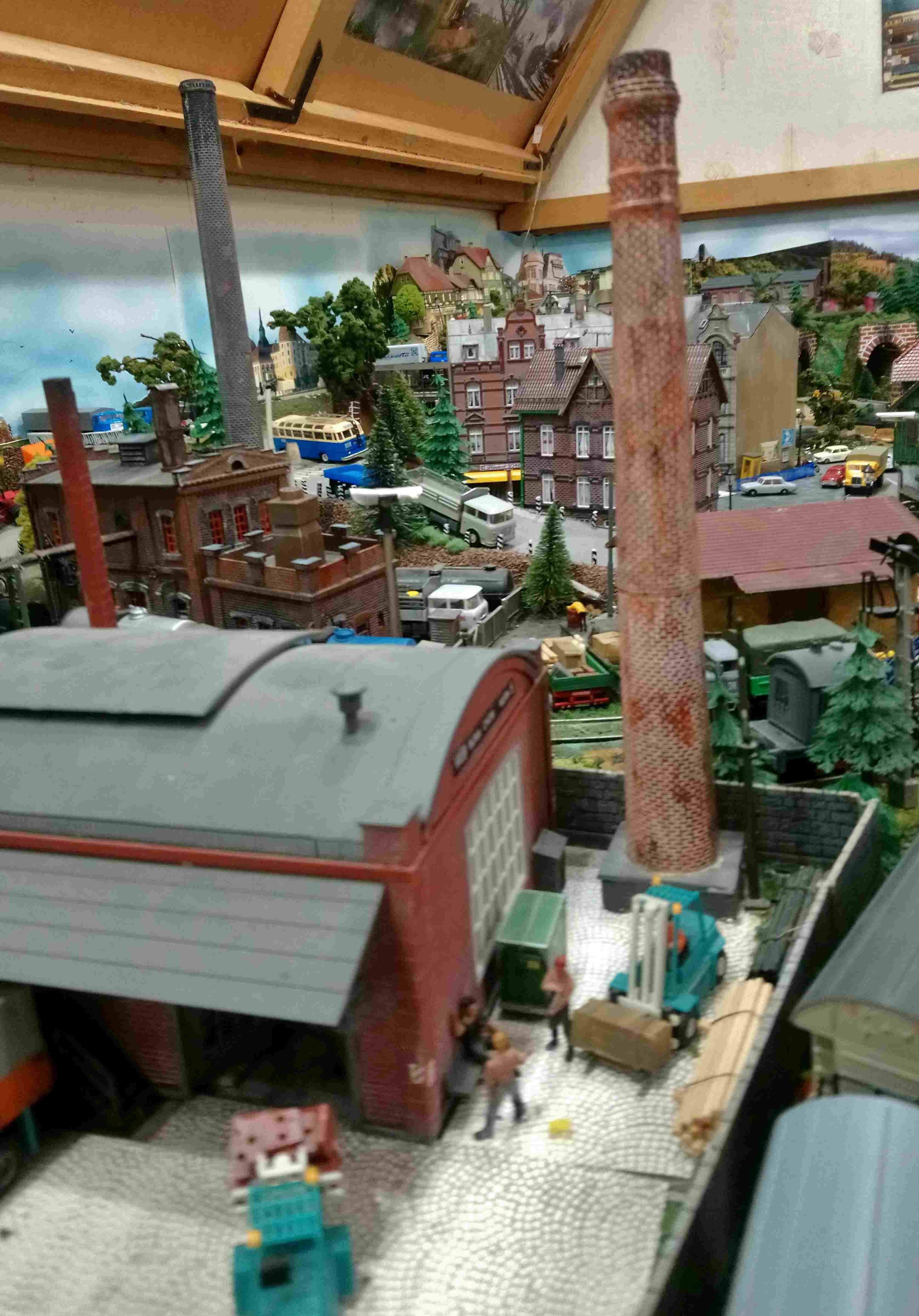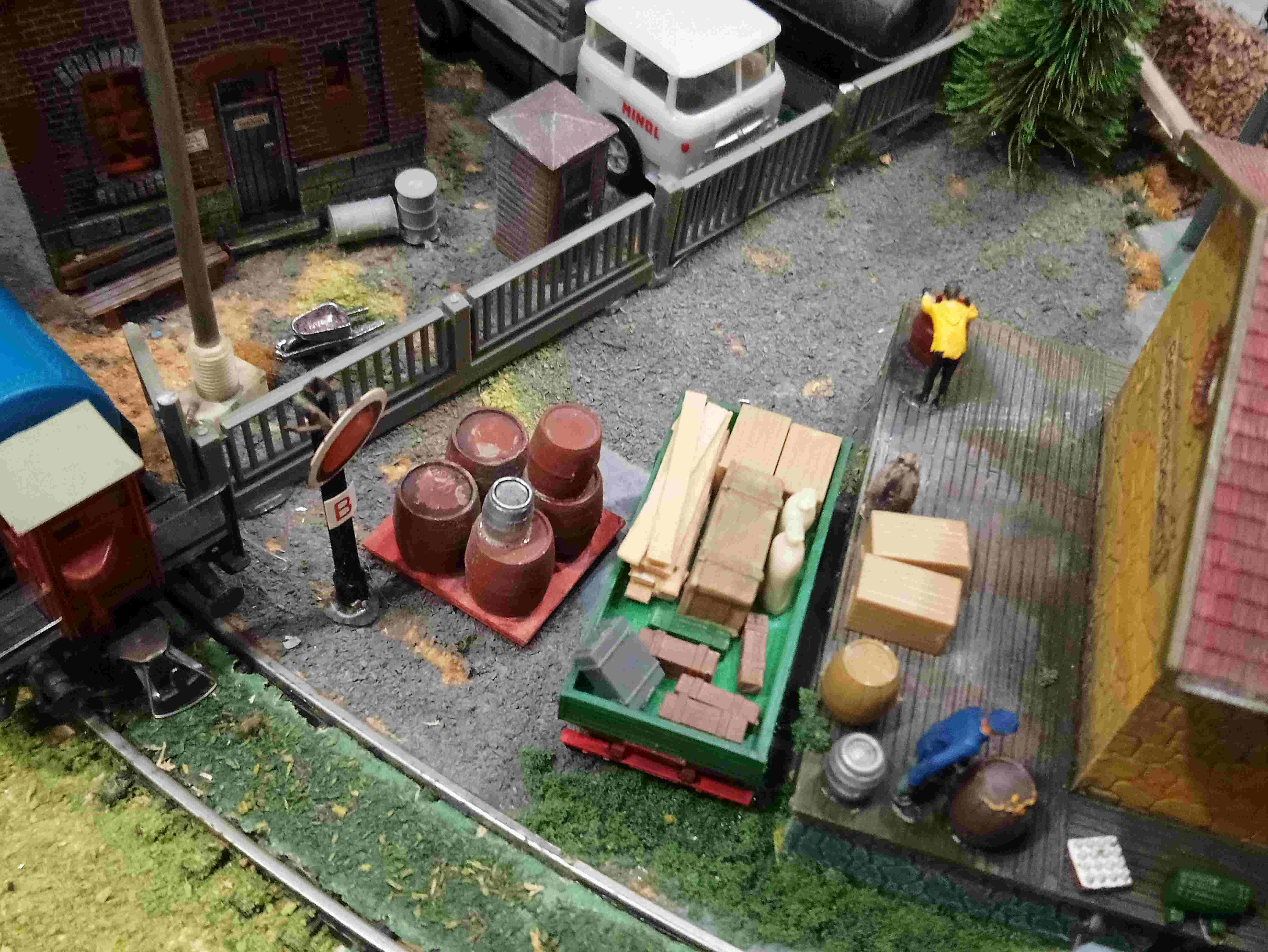 Расставил новые машинки.Баркас техпомощь расположилась у гаражей и Вольво,который на рампе. Пара авто с лесниками заправляются на заправке. Доставка грузов расположилась в жилых домах. Фронтальный самосвал катается на угольной погрузке. Также при общей,кажущейся, перенасыщености макета удалось разместить тела,на двухколесных