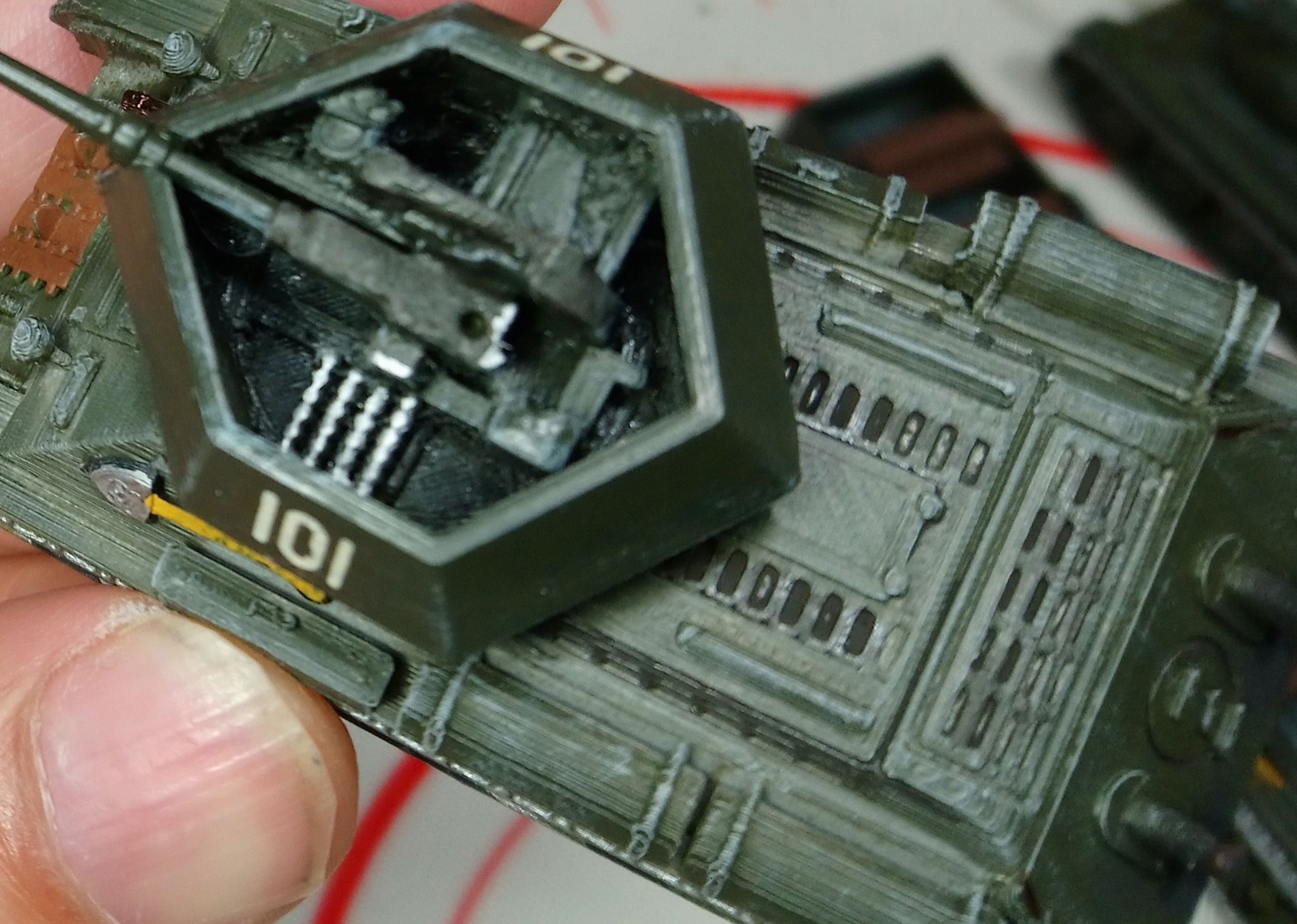Покажу из своих моделей БТТ две, которые тут вроде ещё не светились. Масштаб довольно точно попадает в 87. Раскраска и модернизация не мои, такими мне достались. Может позже руки дойдут довести до ума. Фото делал для учета имеюшейся БТТ, так что за качества просьба не ругать.