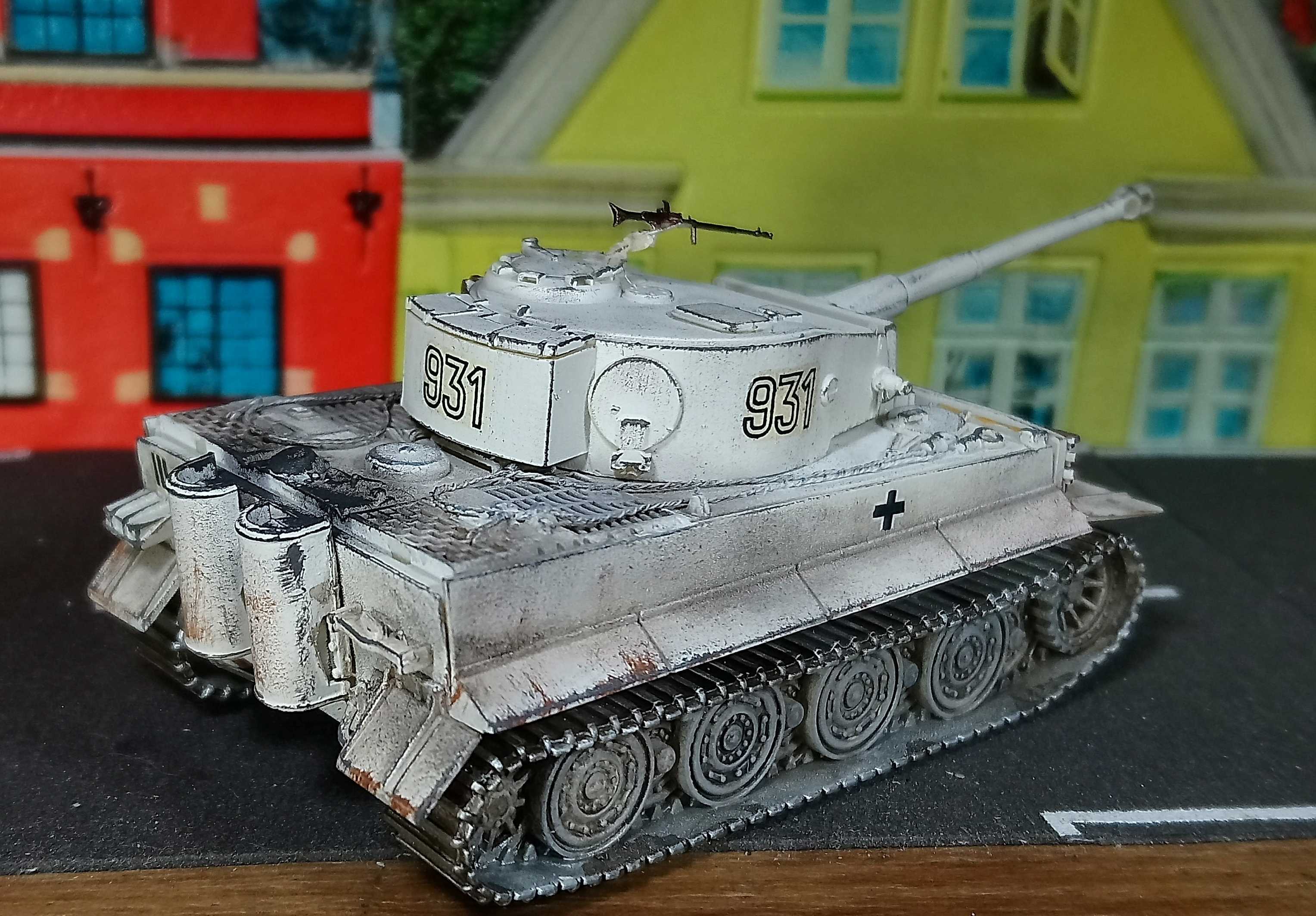 Ранний тигр с боевыми повреждениями и потерями обвеса.Отсутствует ящик на башне,один каток