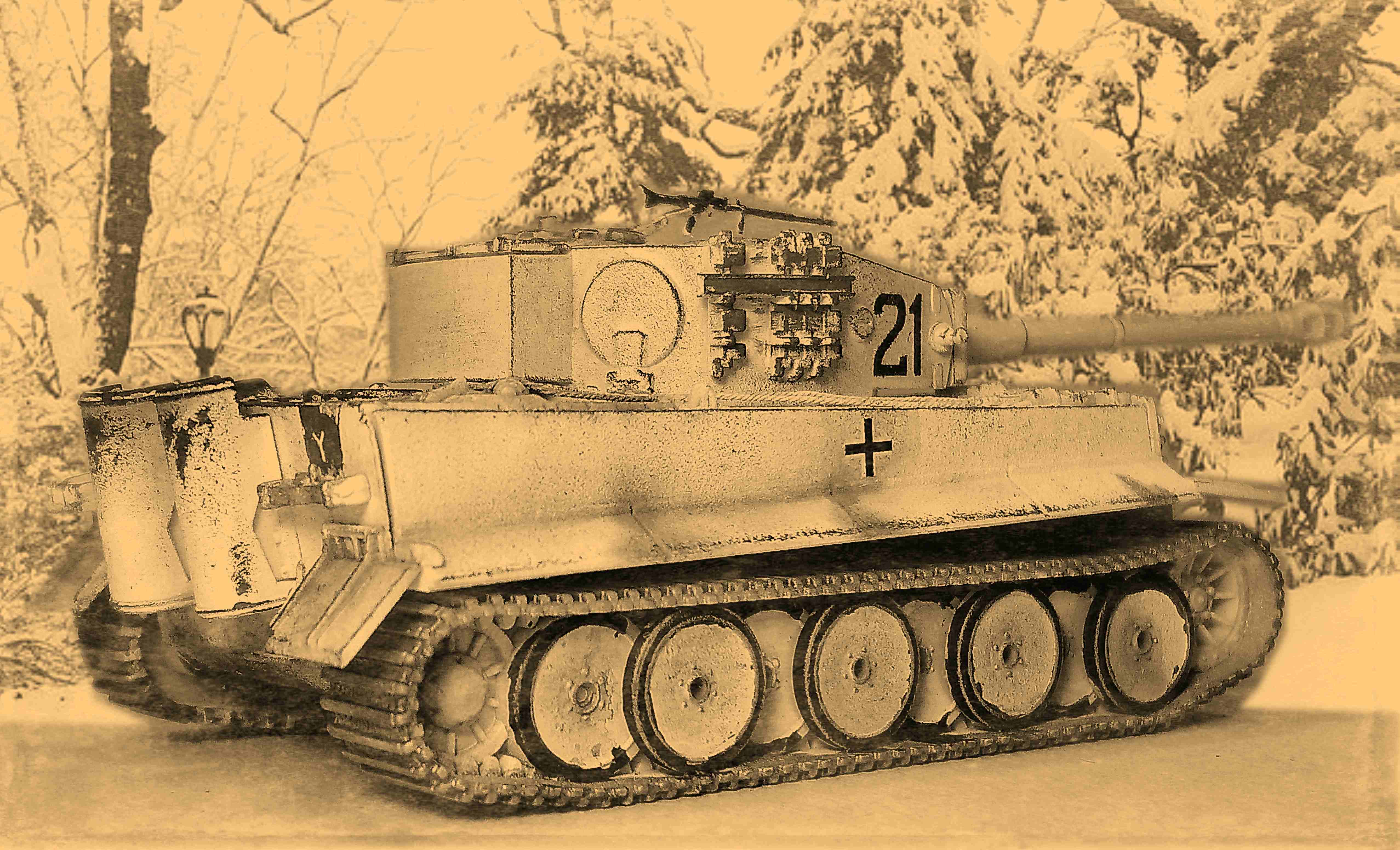 Также сделал прототипичные упоры что бы танк не падал во время движения. Сами танки выглядят так. Довольно редко встречаемый в модельном мире зимний камо.Немного поработал с ним тоже.