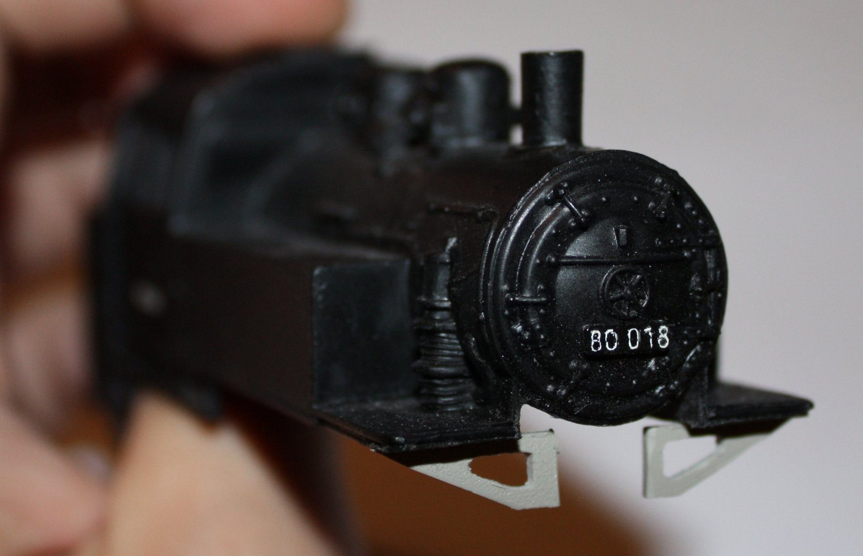 Досталась мне в руки старая поломанная 1964 года выпуска игрушка - двухосный паровоз с выгравированной сбоку табличкой "80 018". Любопытство взяло верх. Обнаружил, что он вовсе не двухосный и намного более красивый. Начал переделку под родные три оси. В расход пошел как донор новый пиковский 50501.