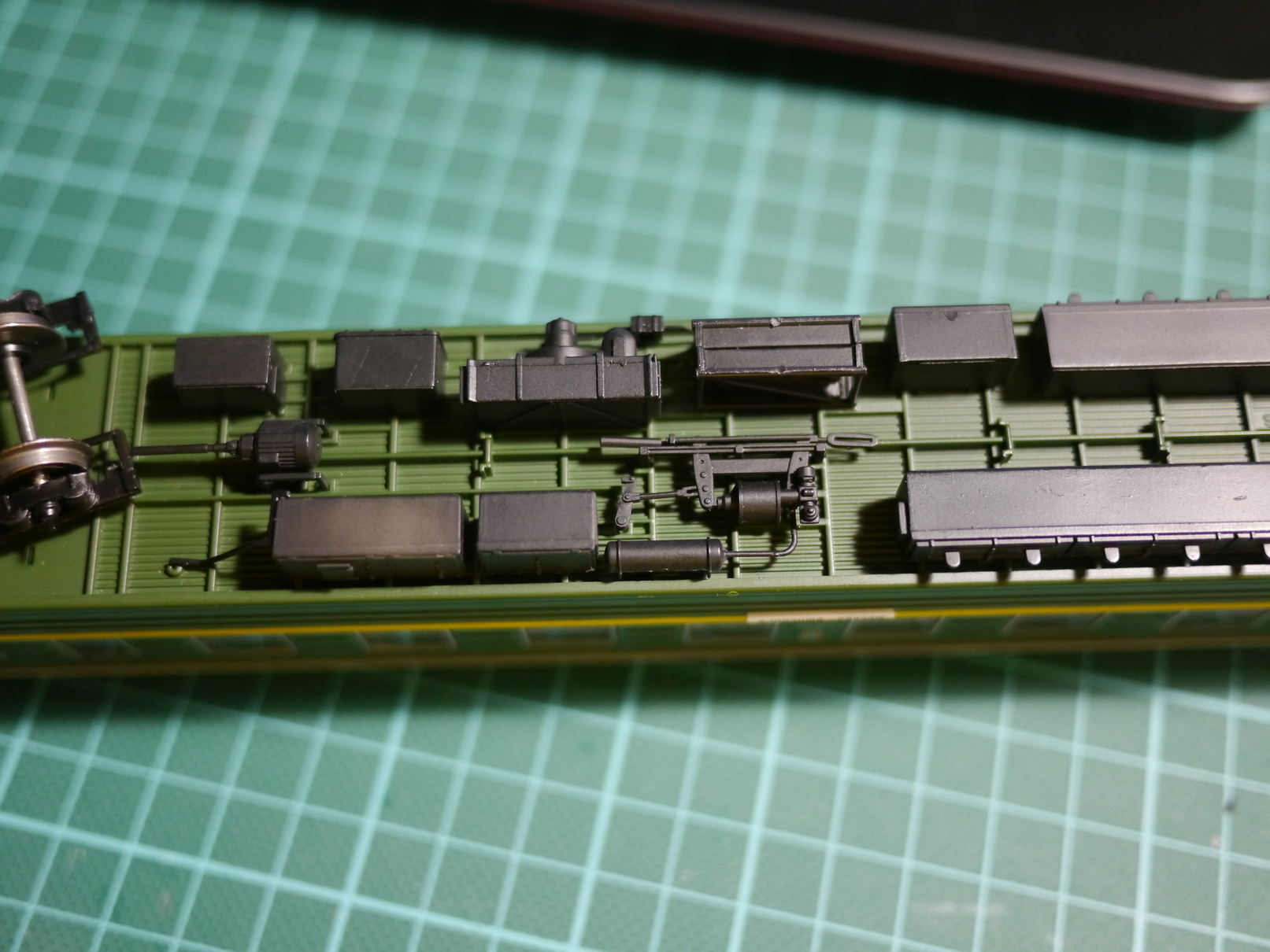 2) Еще большее недоумение вызвали тормозные колодки. Производитель исполнил их отдельной деталью (все 4 колодки одной колесной пары соединены в одну ажурную конструкцию, подклеиваемую к телеге). При фактически каждой постановке на рельсы (когда пальцами касаешься телеги вагона) они вылетали из своих посадочных мест. Наверное, можно было их добротно посадить на клей... но когда во время покатушек вагон стал "на дыбы" из-за вылетевшей на ходу колодки (эдакий "стоп-кран"), я их нафик снял. От греха подальше.