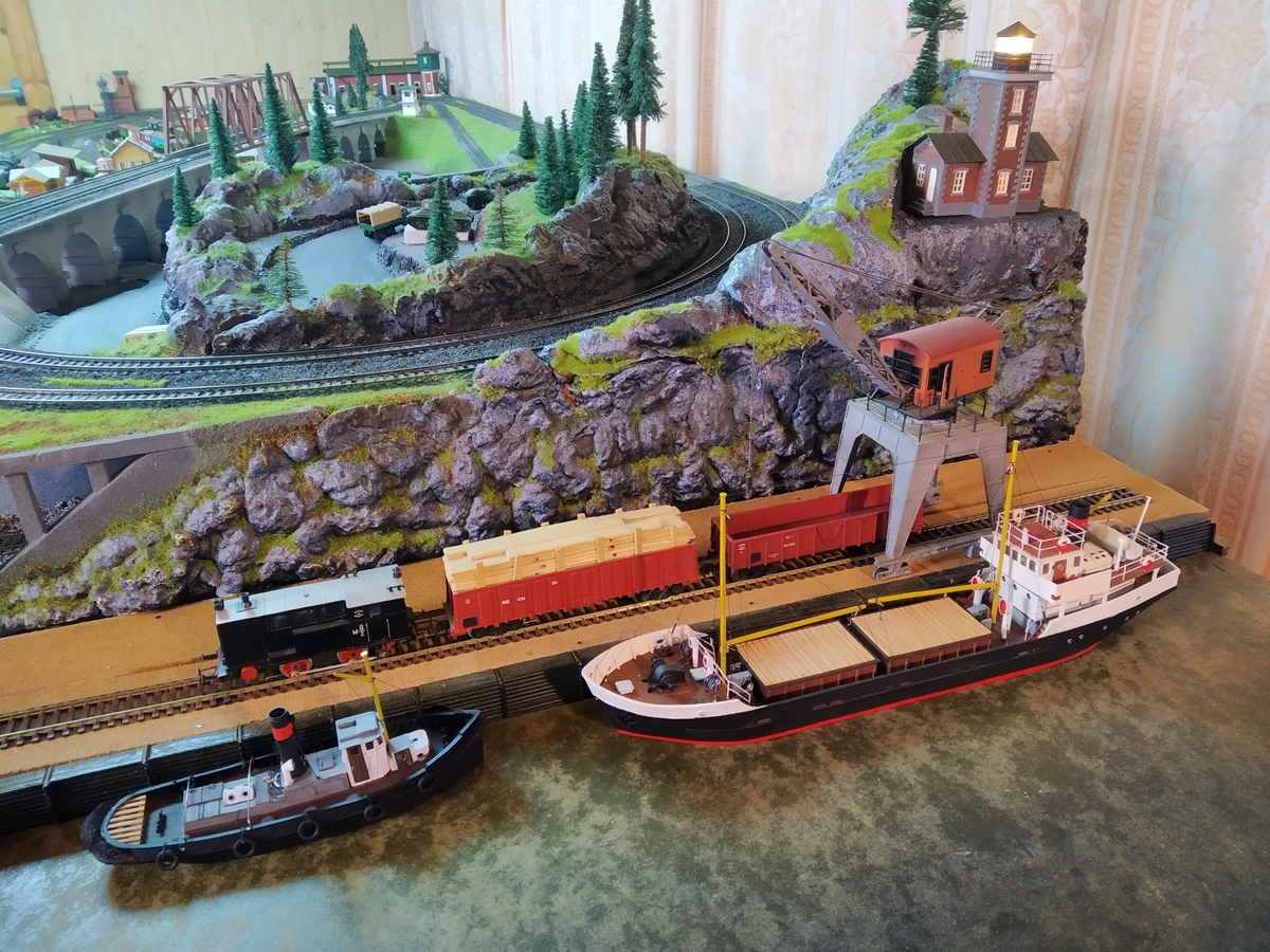 Ну и где-то там проскакивало, что импровизацию по ходу пьесы тоже никто не отменял. В результате изначально задуманная паромная переправа приобрела облик небольшого участка порта.